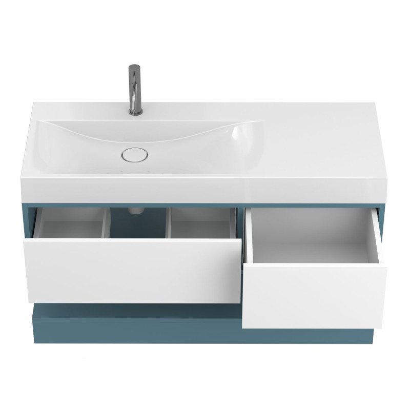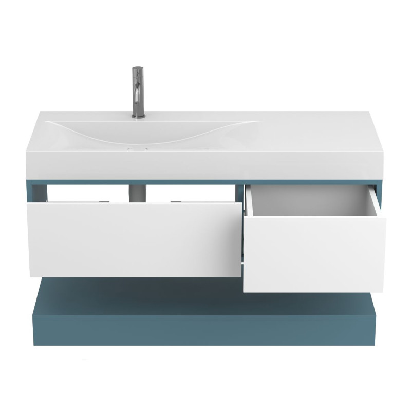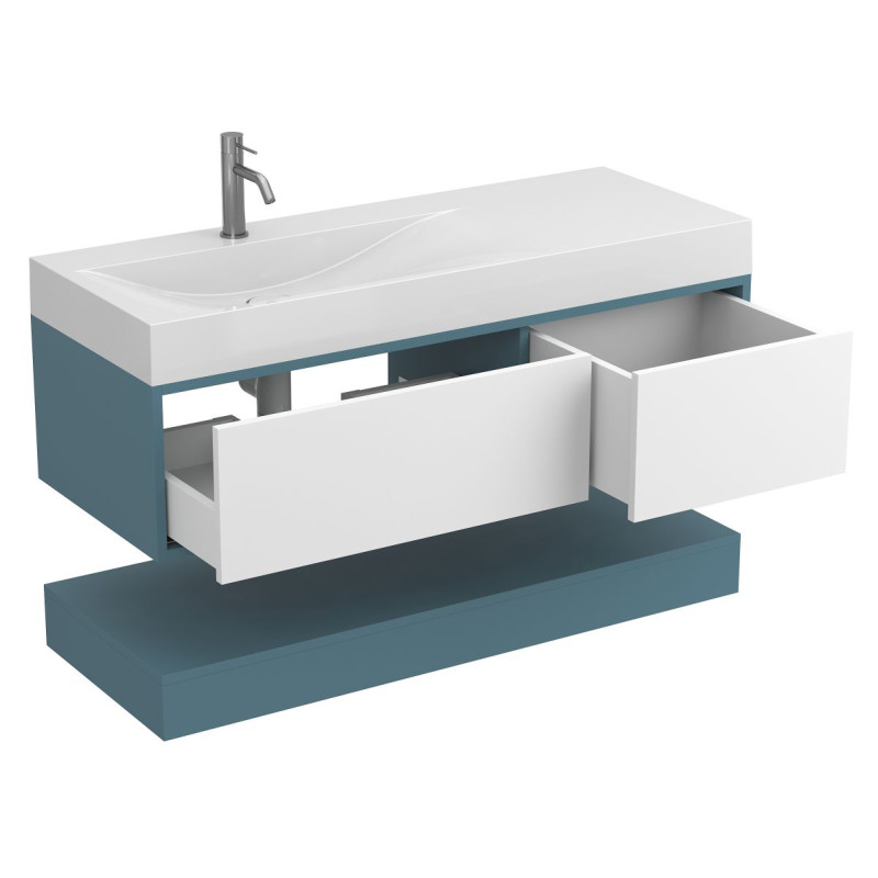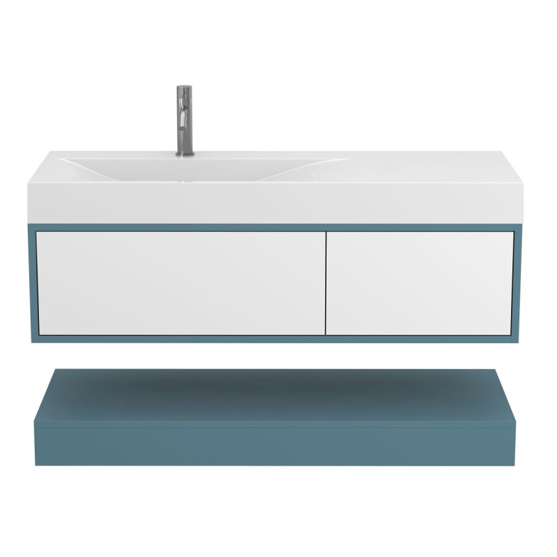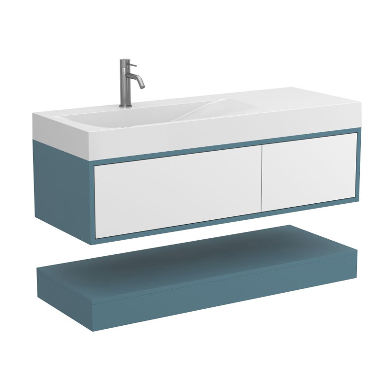 Тумба підвісна DUO Камінь зелений з умивальником VIOLA 1200 L від бренду MIRAGGIO — практичне та стильне рішення для ванної кімнати дому, готелю чи апартаментів.