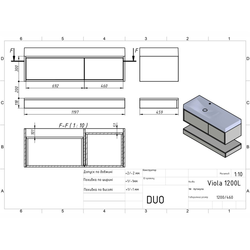 | Раковина в комплекті | VIOLA 1200 L |