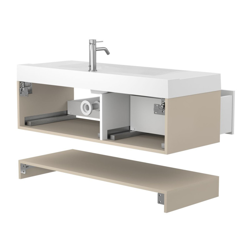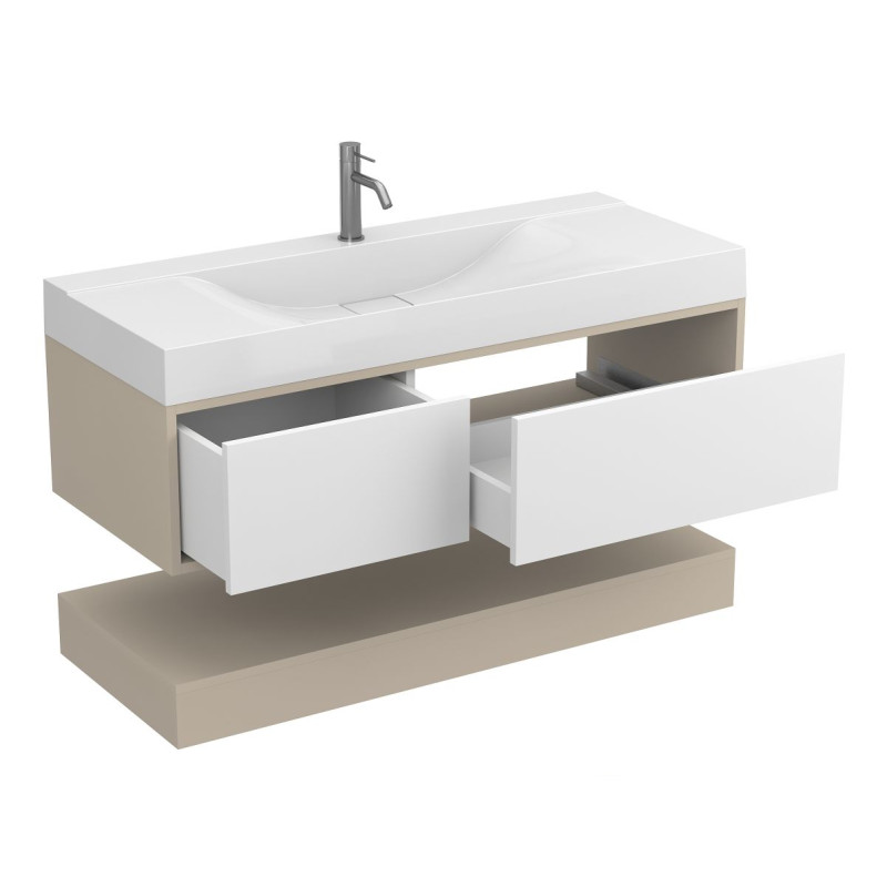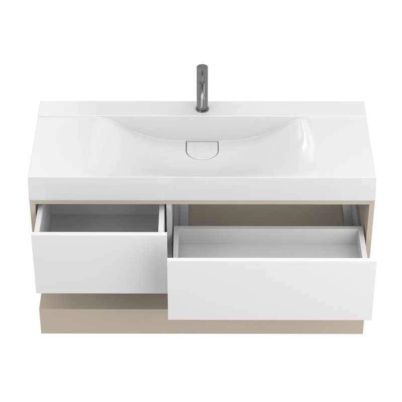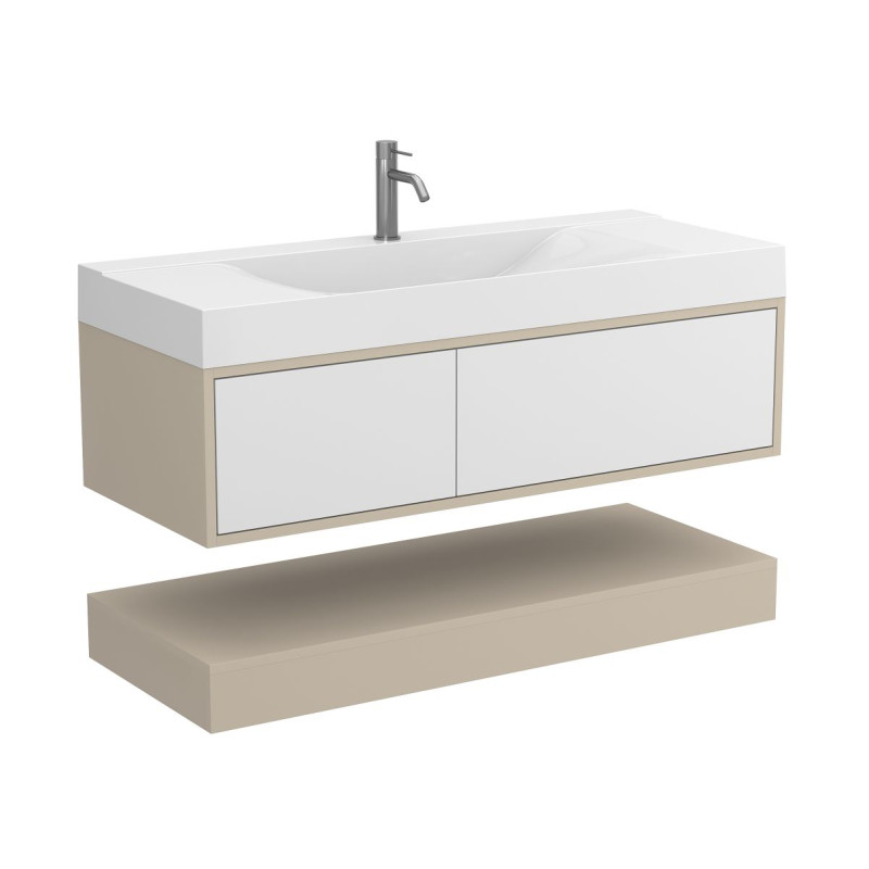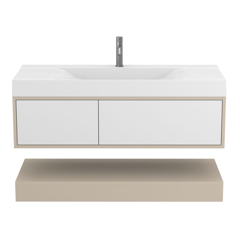 Тумба підвісна DUO Кашемір з умивальником FLY 1200 від бренду MIRAGGIO — практичне та стильне рішення для ванної кімнати дому, готелю чи апартаментів.