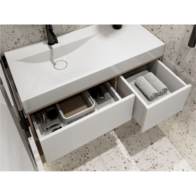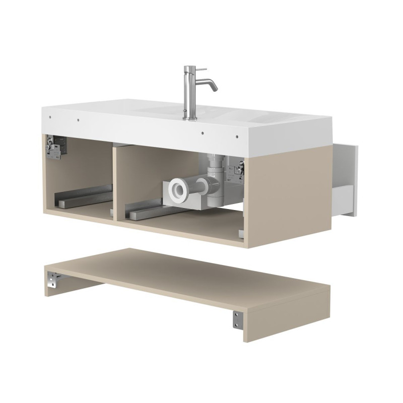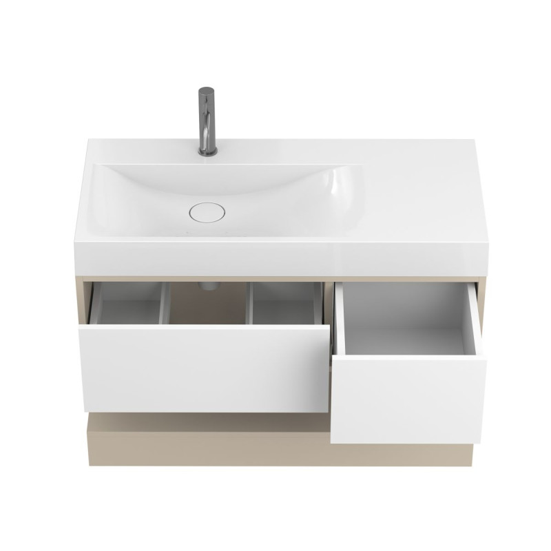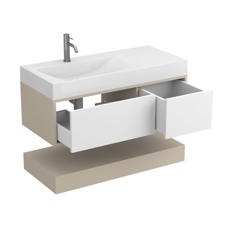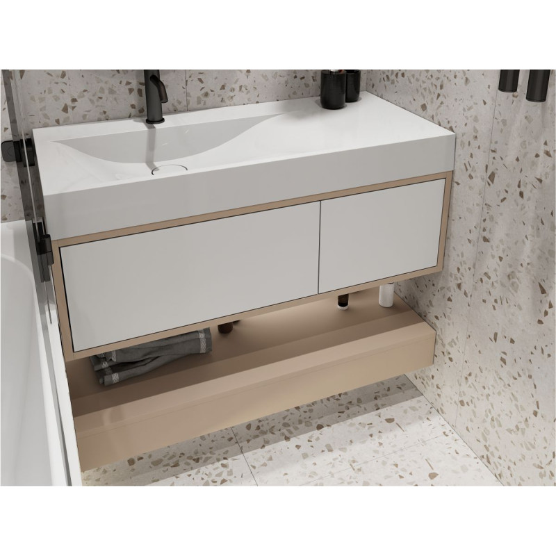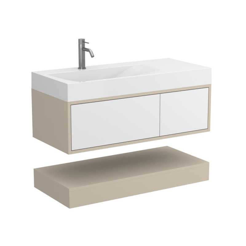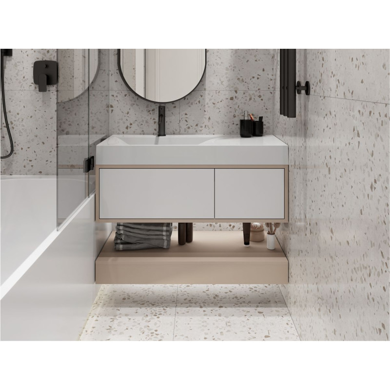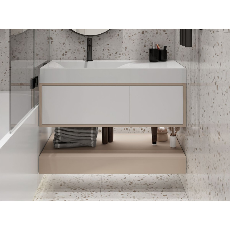 Тумба підвісна DUO Кашемір з умивальником VIOLA 1000 L від бренду MIRAGGIO — практичне та стильне рішення для ванної кімнати дому, готелю чи апартаментів.