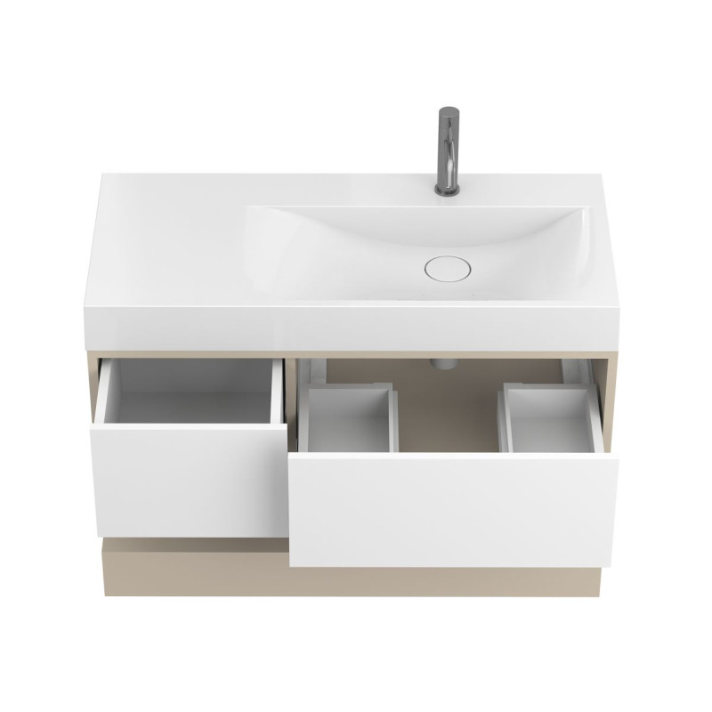Тумба підвісна DUO Кашемір з умивальником VIOLA 1000 R від бренду MIRAGGIO — практичне та стильне рішення для ванної кімнати дому, готелю чи апартаментів.