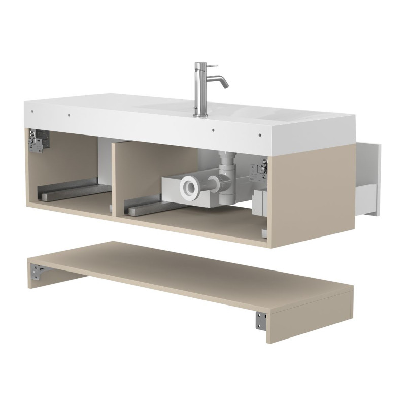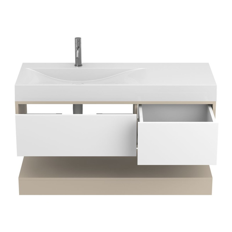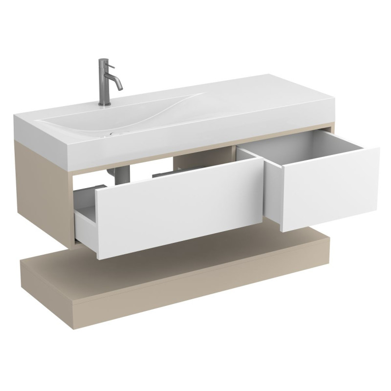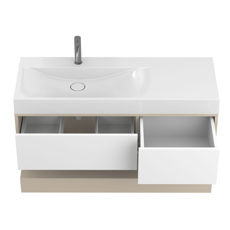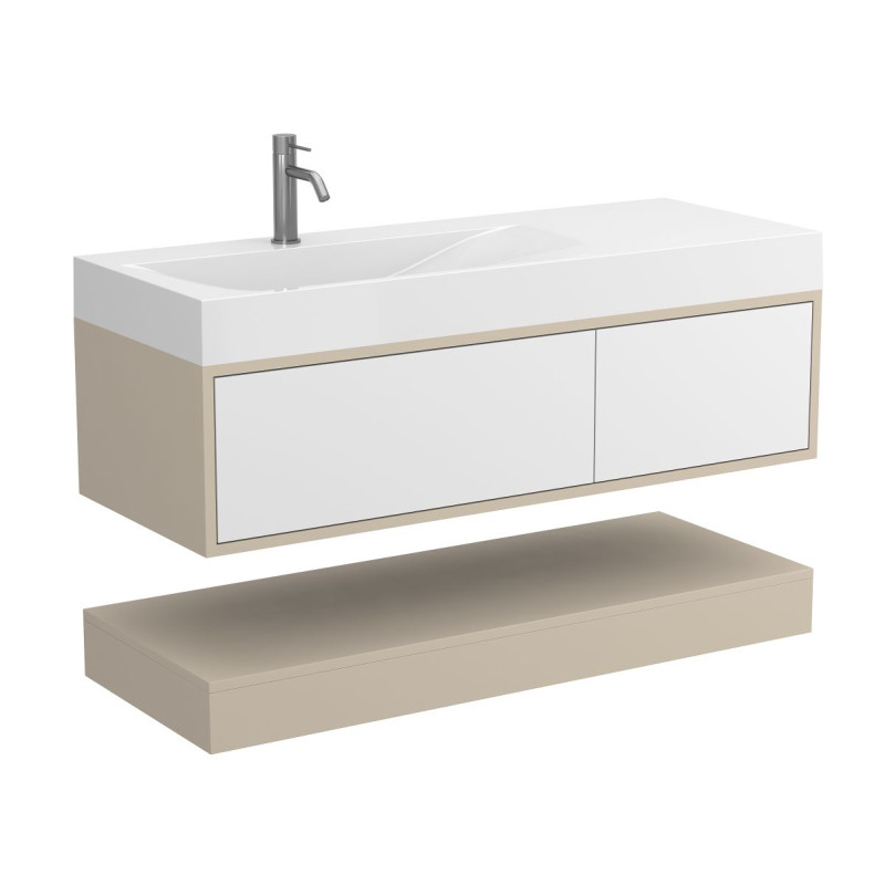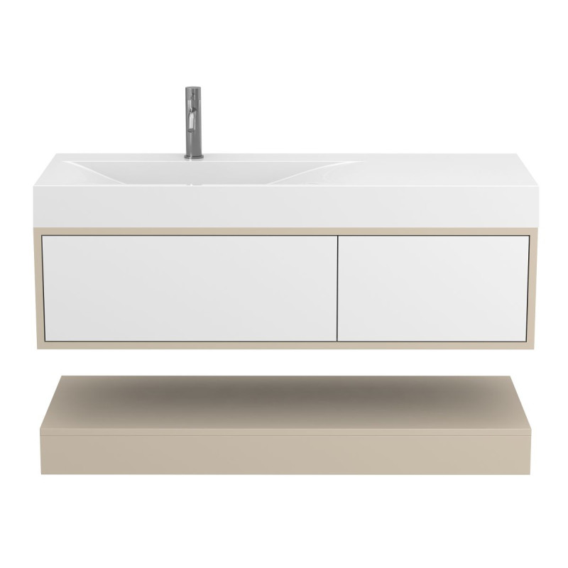 Тумба підвісна DUO Кашемір з умивальником VIOLA 1200 L від бренду MIRAGGIO — практичне та стильне рішення для ванної кімнати дому, готелю чи апартаментів.