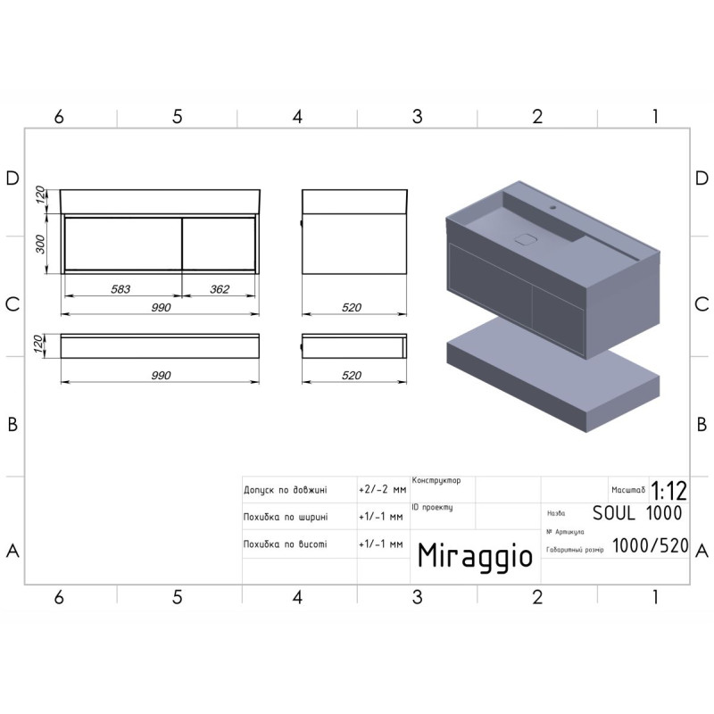Тумба підвісна DUO Сірий з умивальником SOUL 1000 від бренду MIRAGGIO — практичне та стильне рішення для ванної кімнати дому, готелю чи апартаментів.
