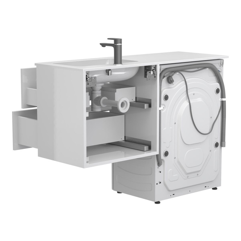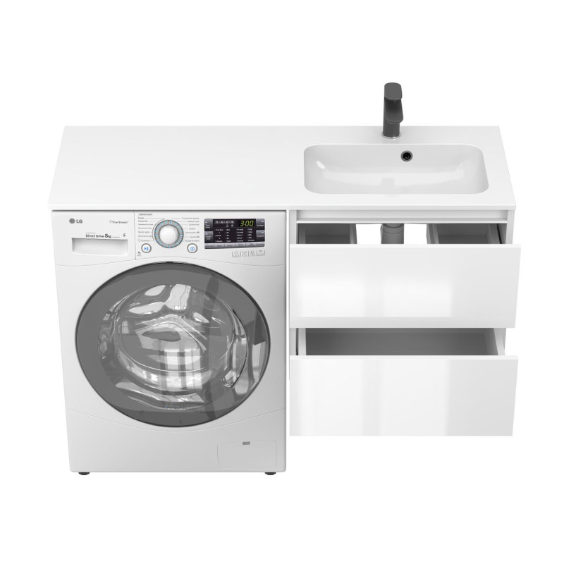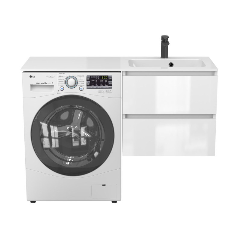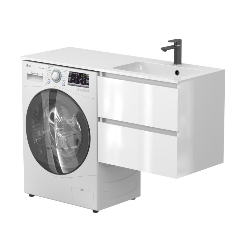 Тумба підвісна LUMO Біла глянцева з умивальником DELLA 1200 R від бренду MIRAGGIO — практичне та стильне рішення для ванної кімнати дому, готелю чи апартаментів.