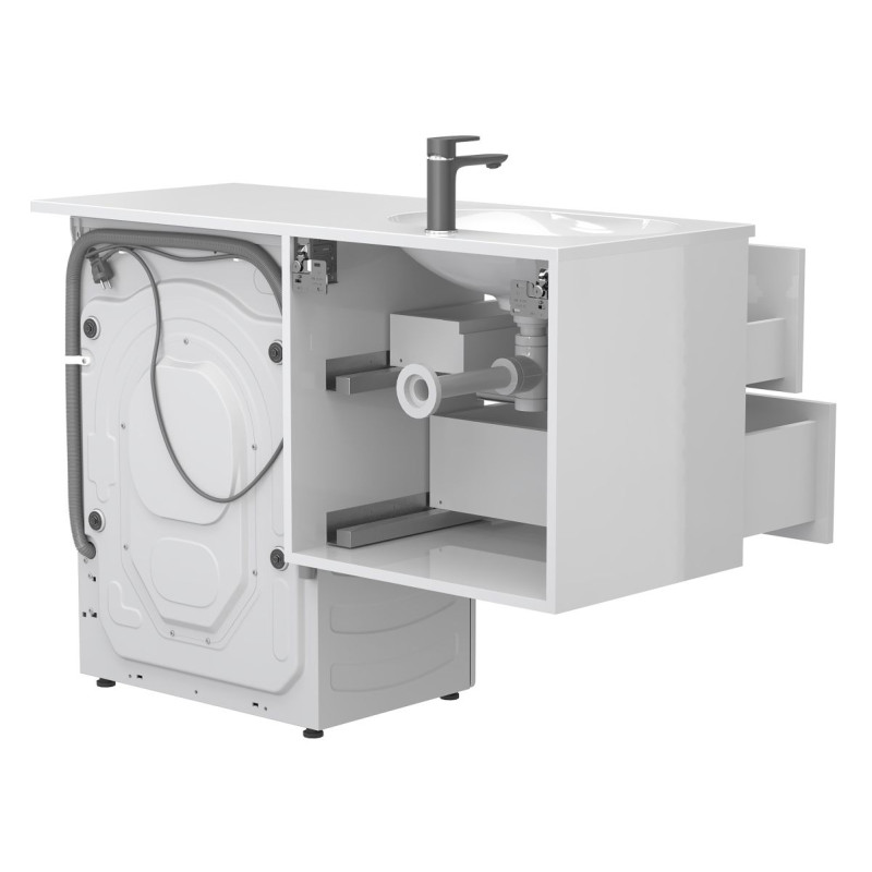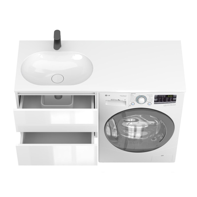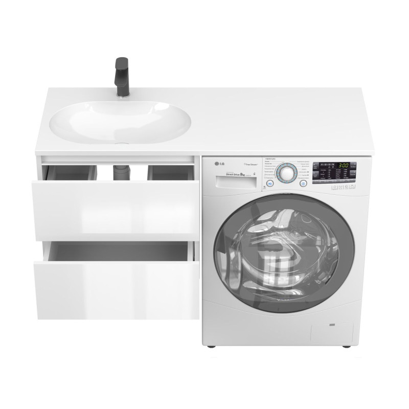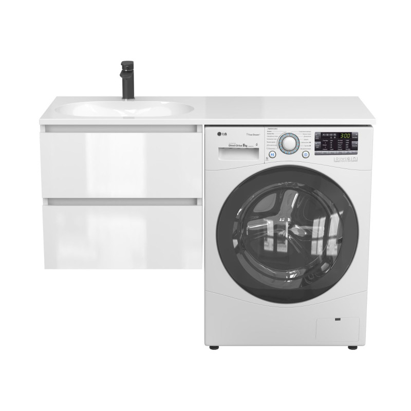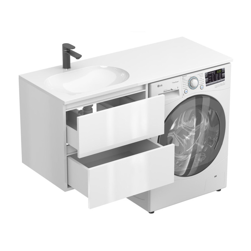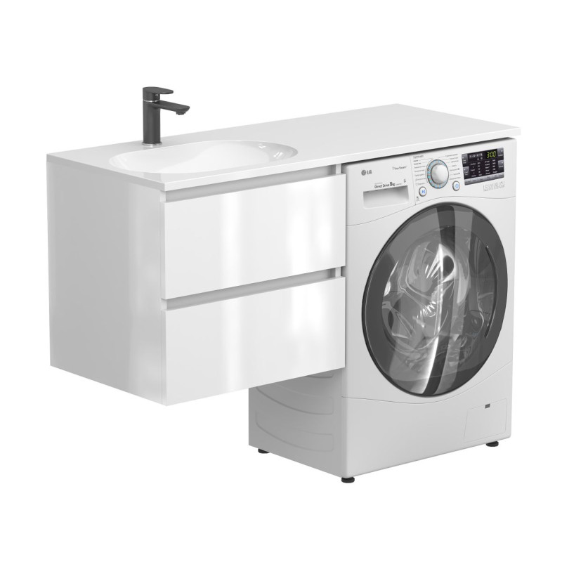 Тумба підвісна LUMO Біла глянцева з умивальником NEW YORK 1200 L від бренду MIRAGGIO — практичне та стильне рішення для ванної кімнати дому, готелю чи апартаментів.