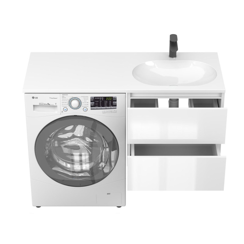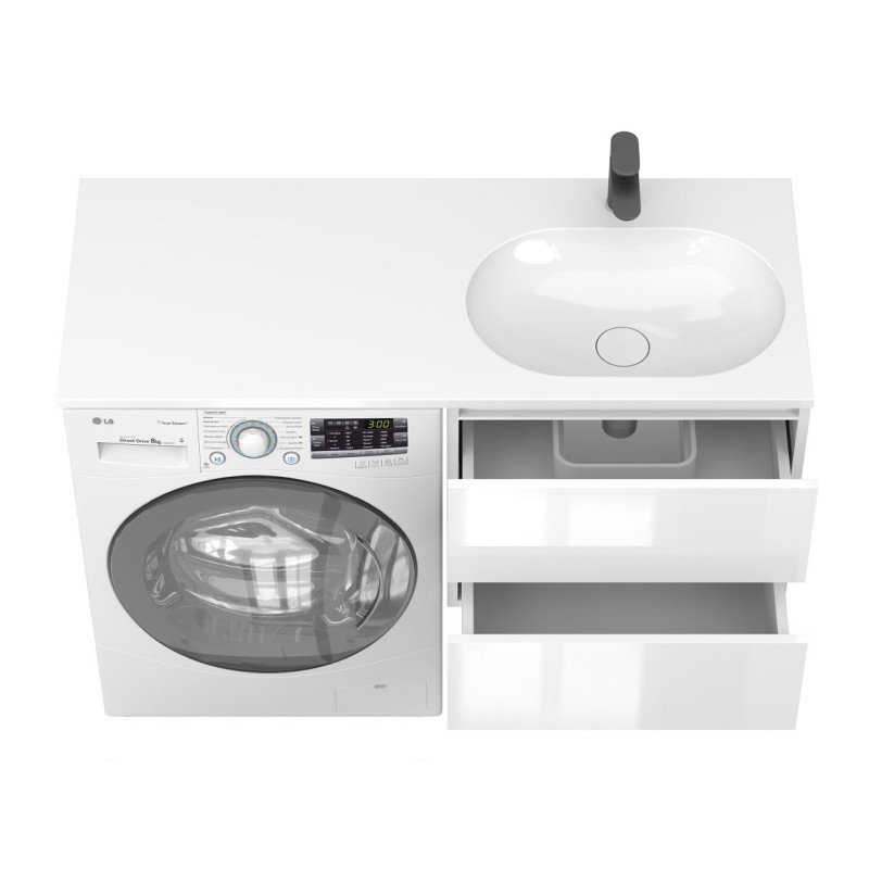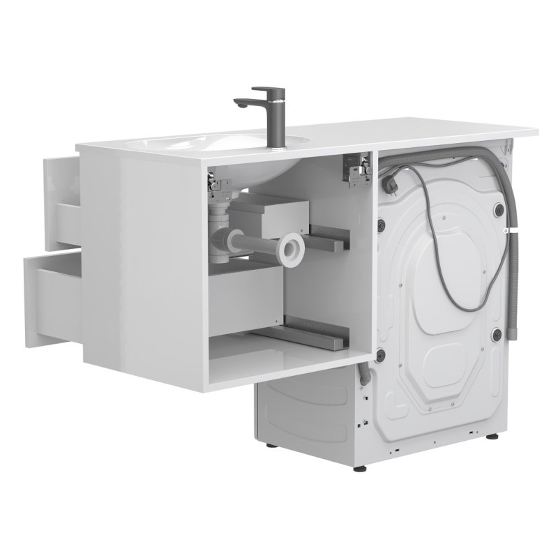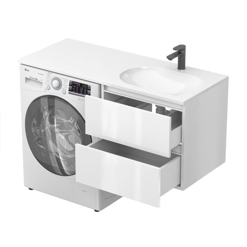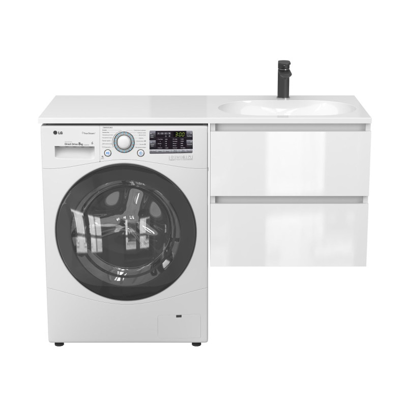 Тумба підвісна LUMO Біла глянцева з умивальником NEW YORK 1200 R від бренду MIRAGGIO — практичне та стильне рішення для ванної кімнати дому, готелю чи апартаментів.