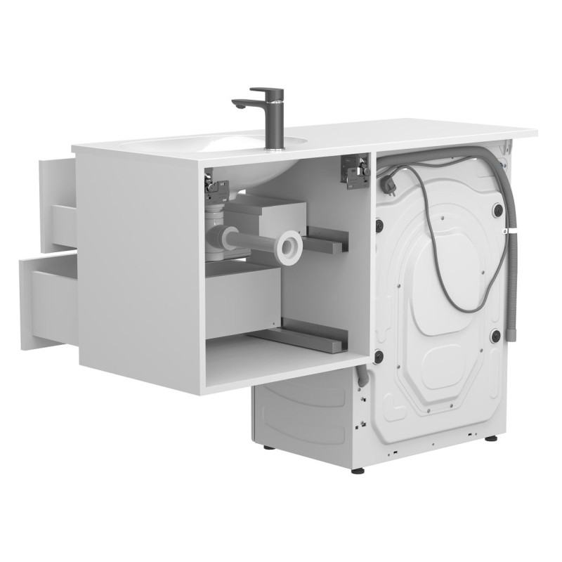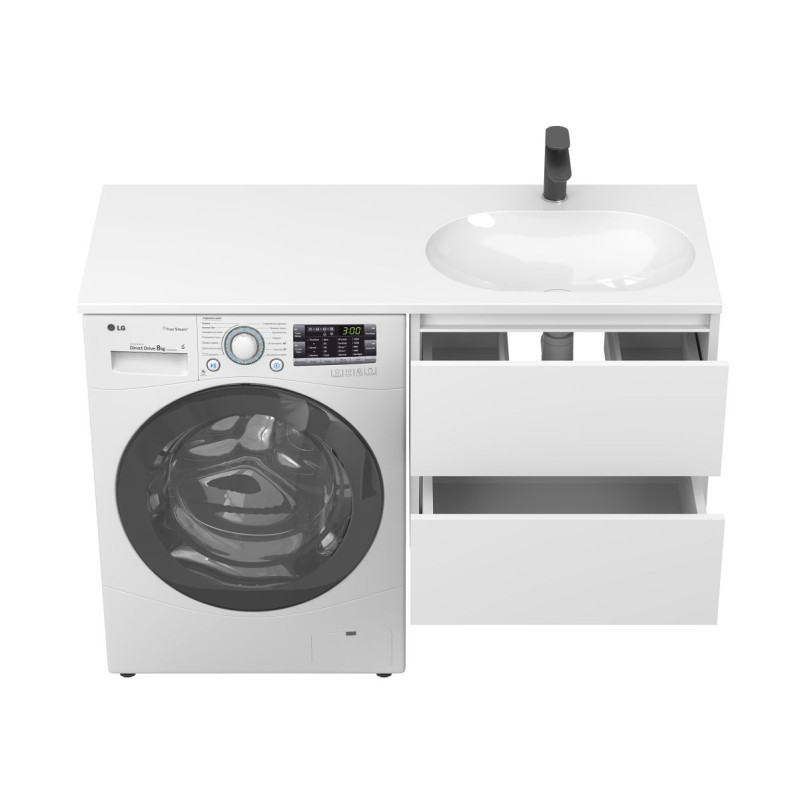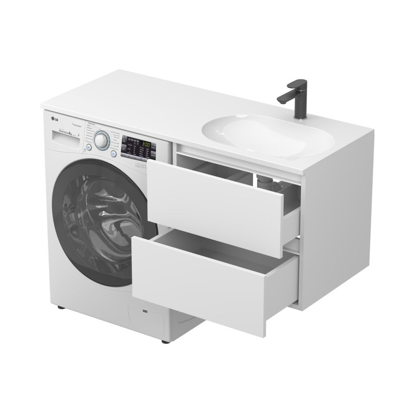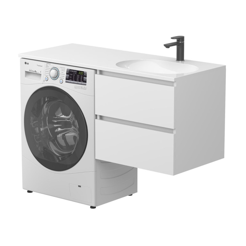Тумба підвісна LUMO Біла матова з умивальником LAKE 1250 R від бренду MIRAGGIO — практичне та стильне рішення для ванної кімнати дому, готелю чи апартаментів.