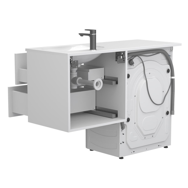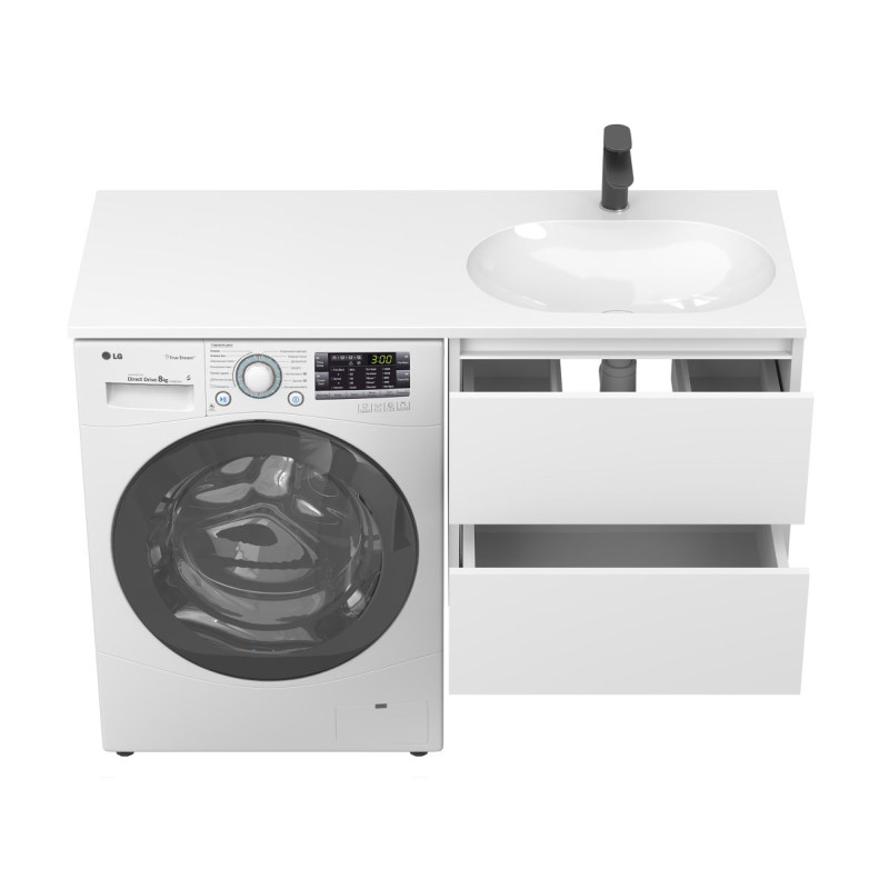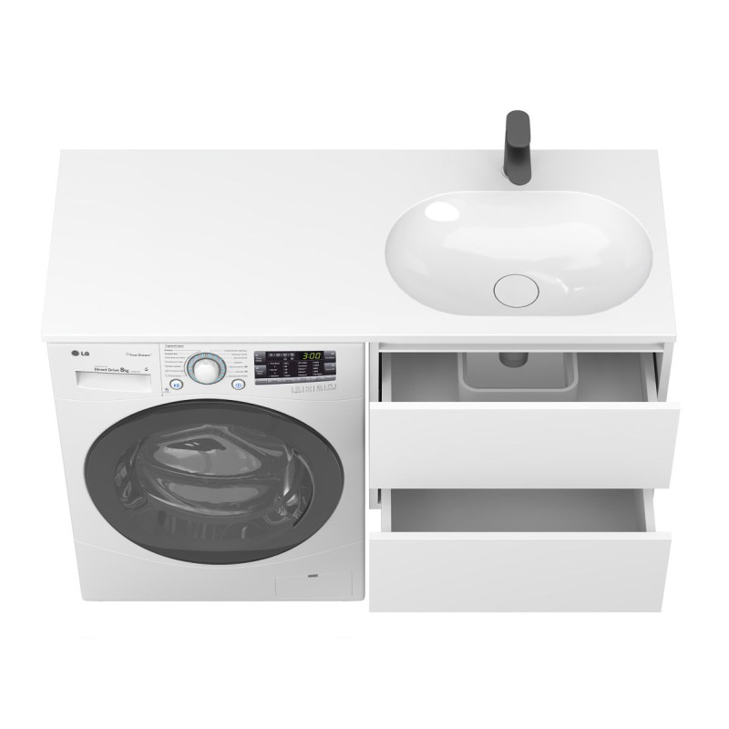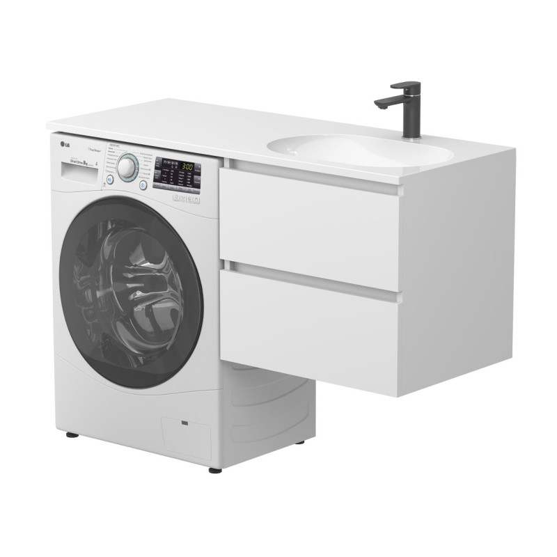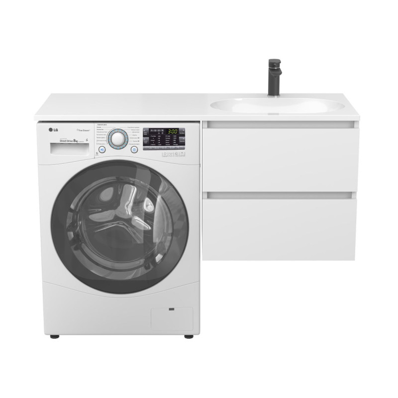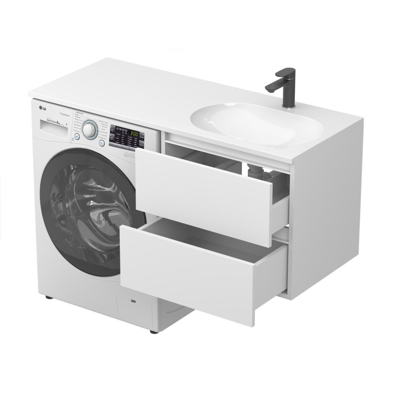 Тумба підвісна LUMO Біла матова з умивальником NEW YORK 1200 R від бренду MIRAGGIO — практичне та стильне рішення для ванної кімнати дому, готелю чи апартаментів.