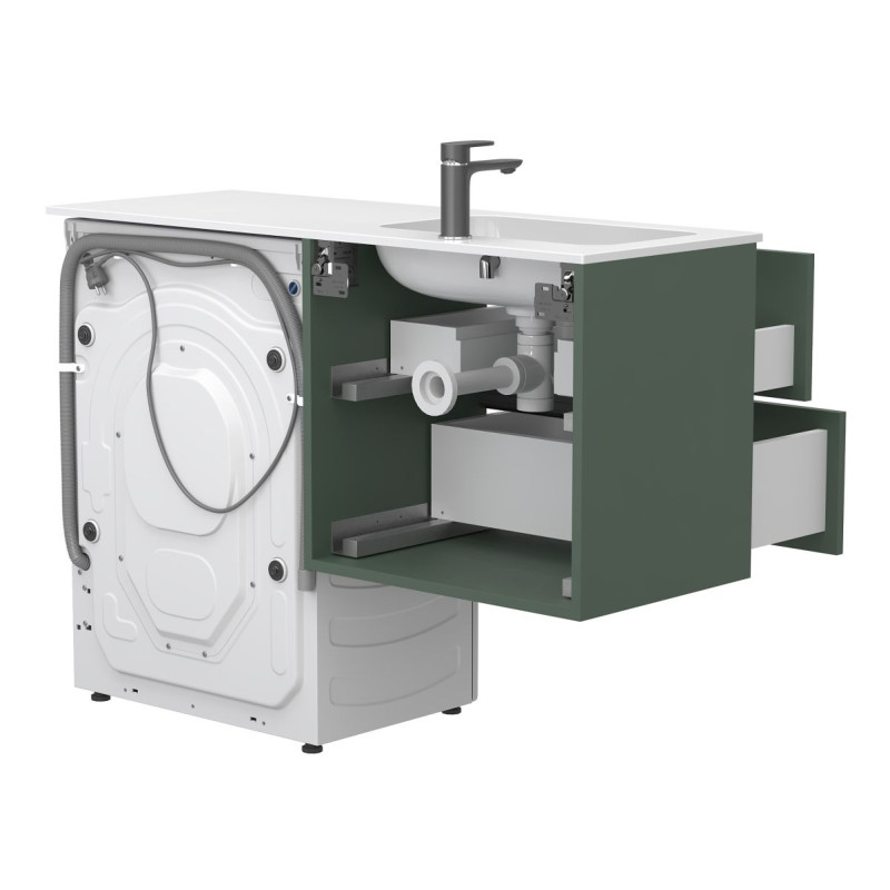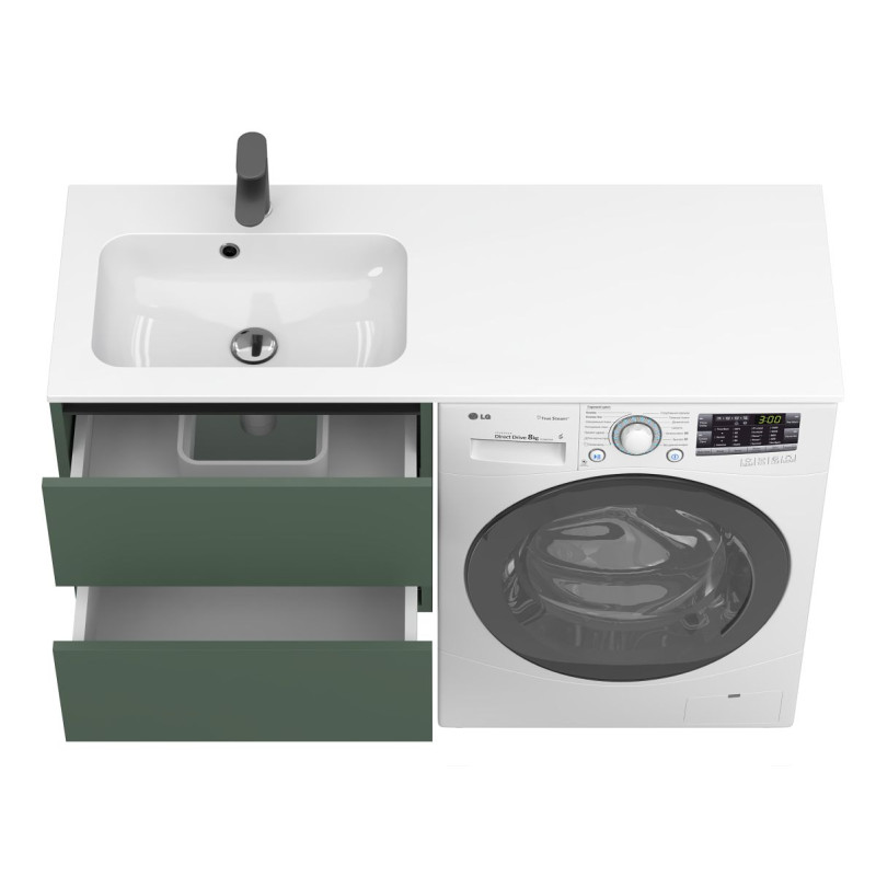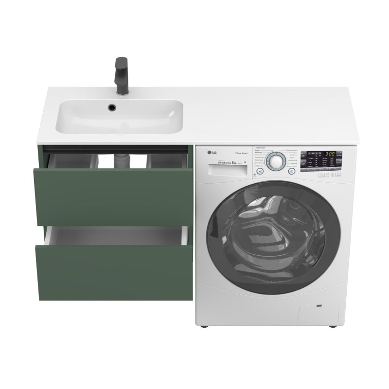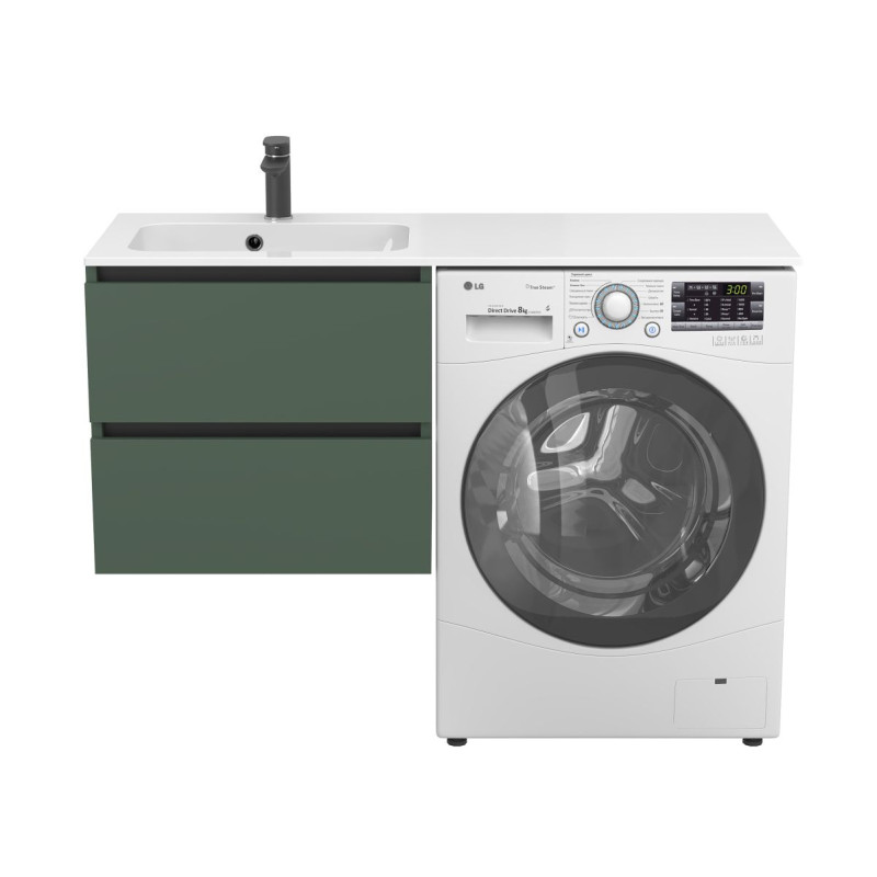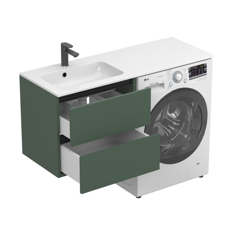 Тумба підвісна LUMO Ліс зелений з умивальником DELLA 1200 L від бренду MIRAGGIO — практичне та стильне рішення для ванної кімнати дому, готелю чи апартаментів.