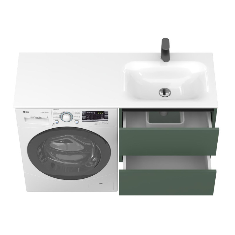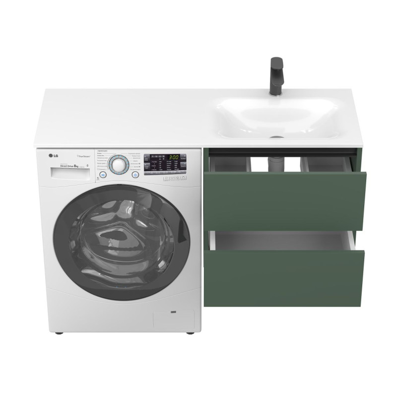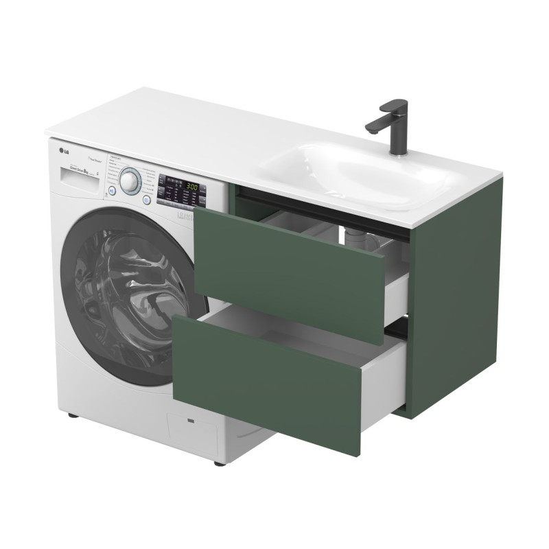 Тумба підвісна LUMO Ліс зелений з умивальником JESSEL 1200 R від бренду MIRAGGIO — практичне та стильне рішення для ванної кімнати дому, готелю чи апартаментів.