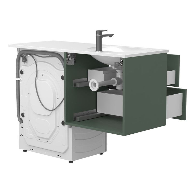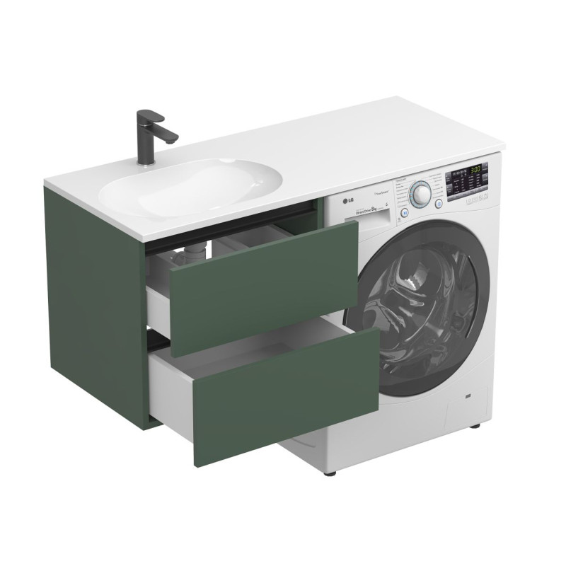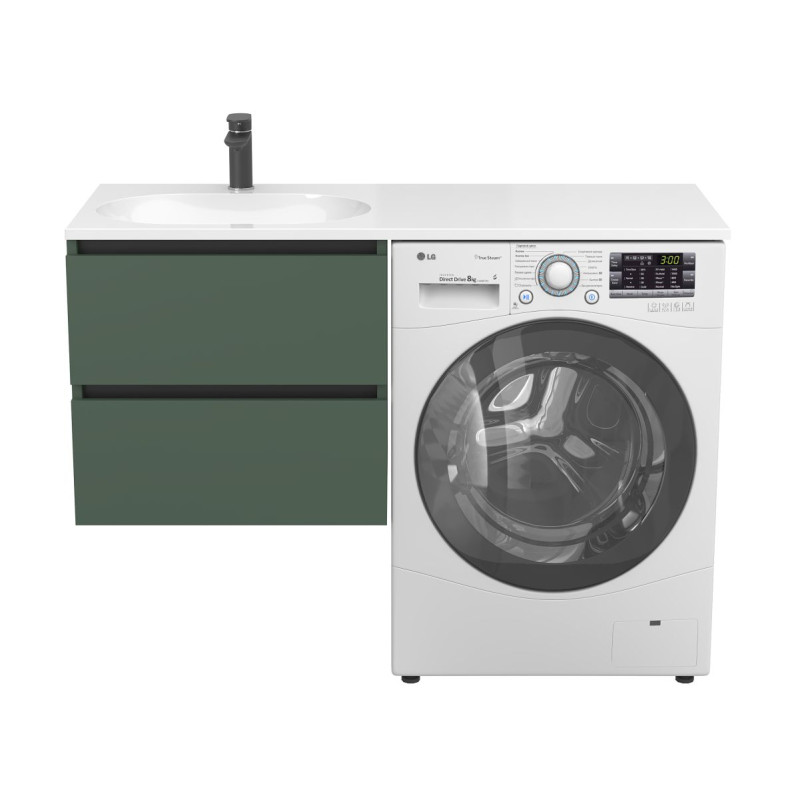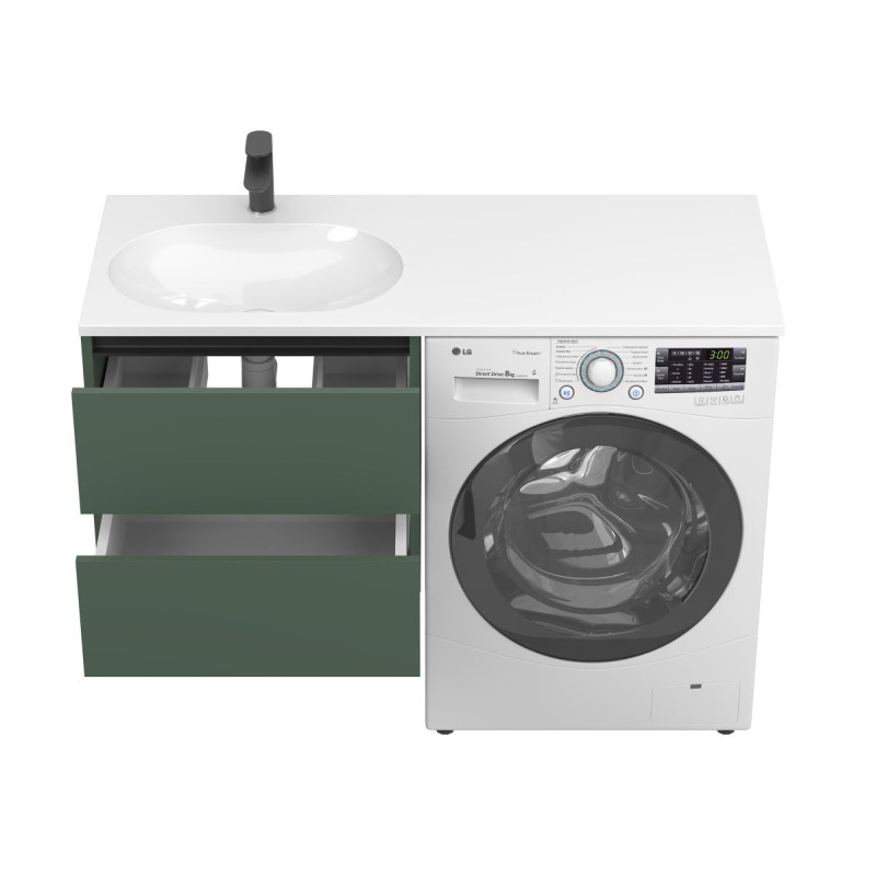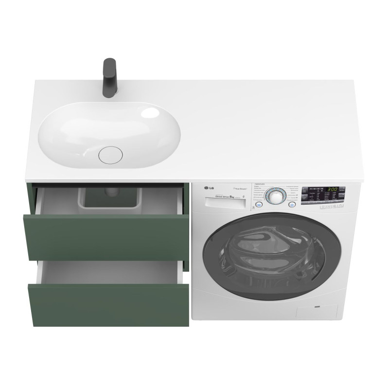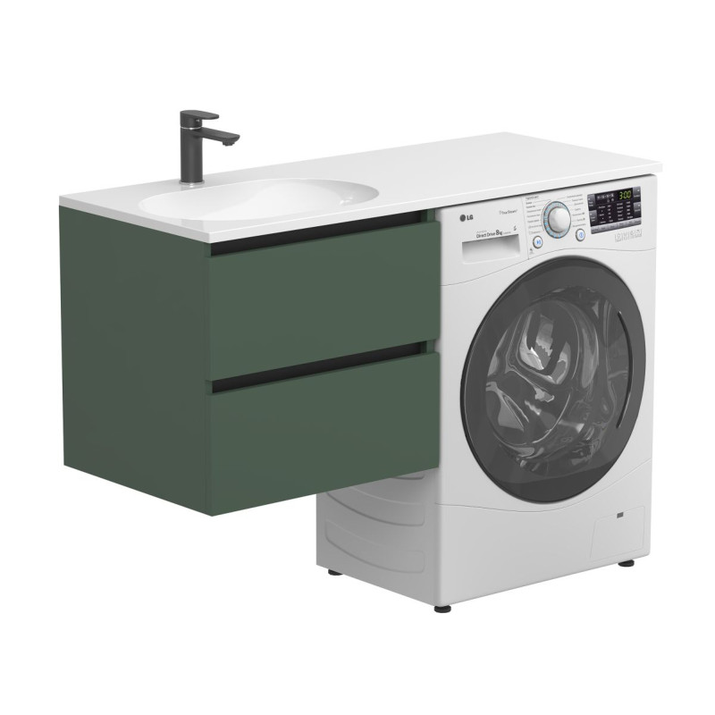Тумба підвісна LUMO Ліс зелений з умивальником LAKE 1250 L від бренду MIRAGGIO — практичне та стильне рішення для ванної кімнати дому, готелю чи апартаментів.