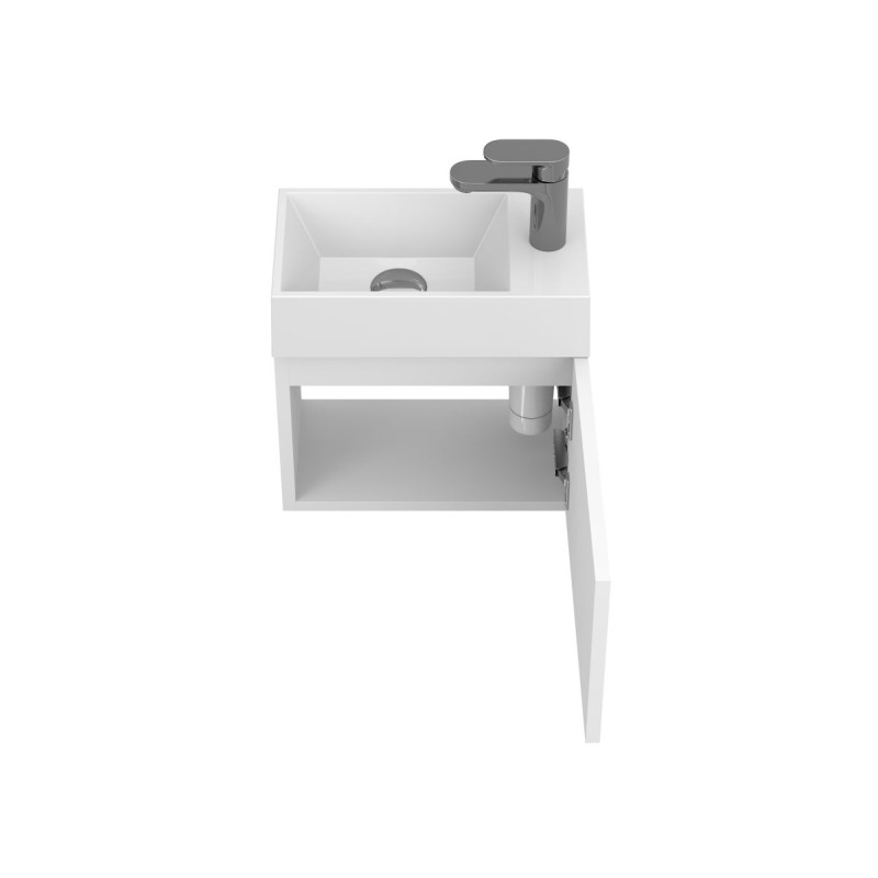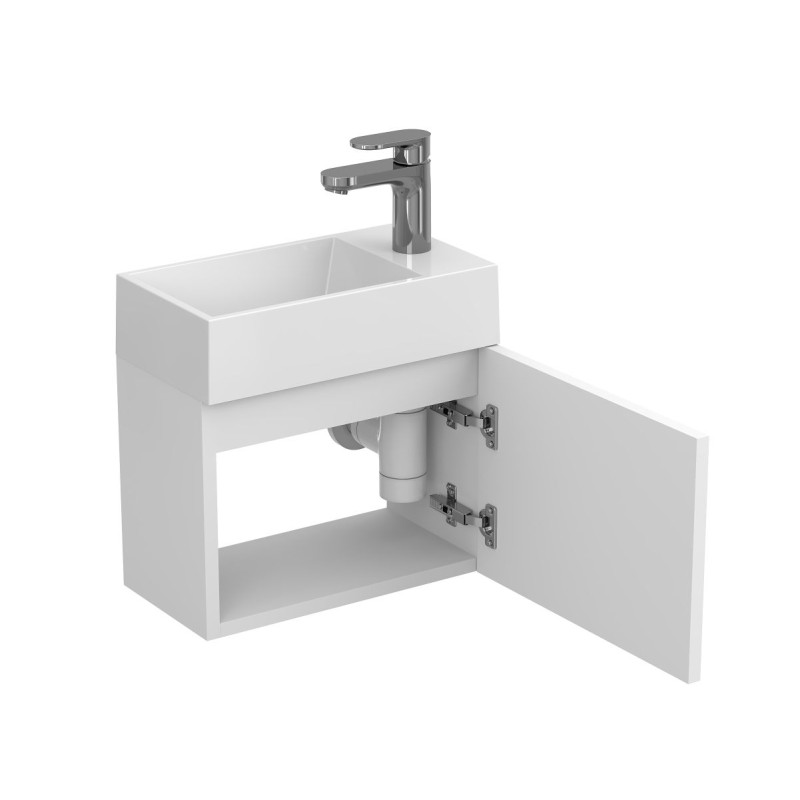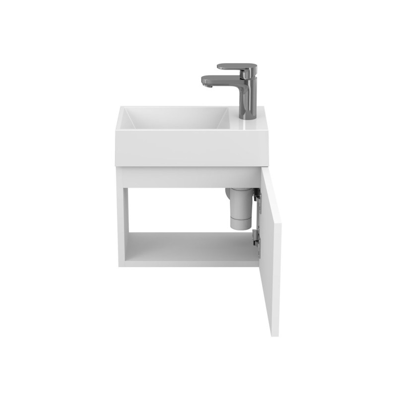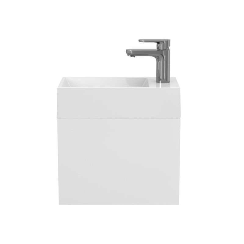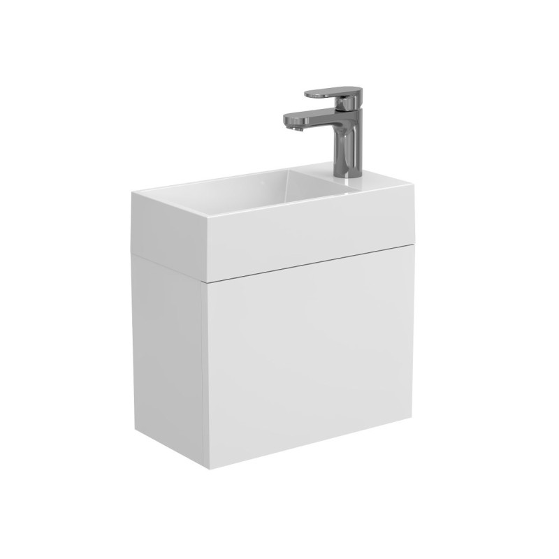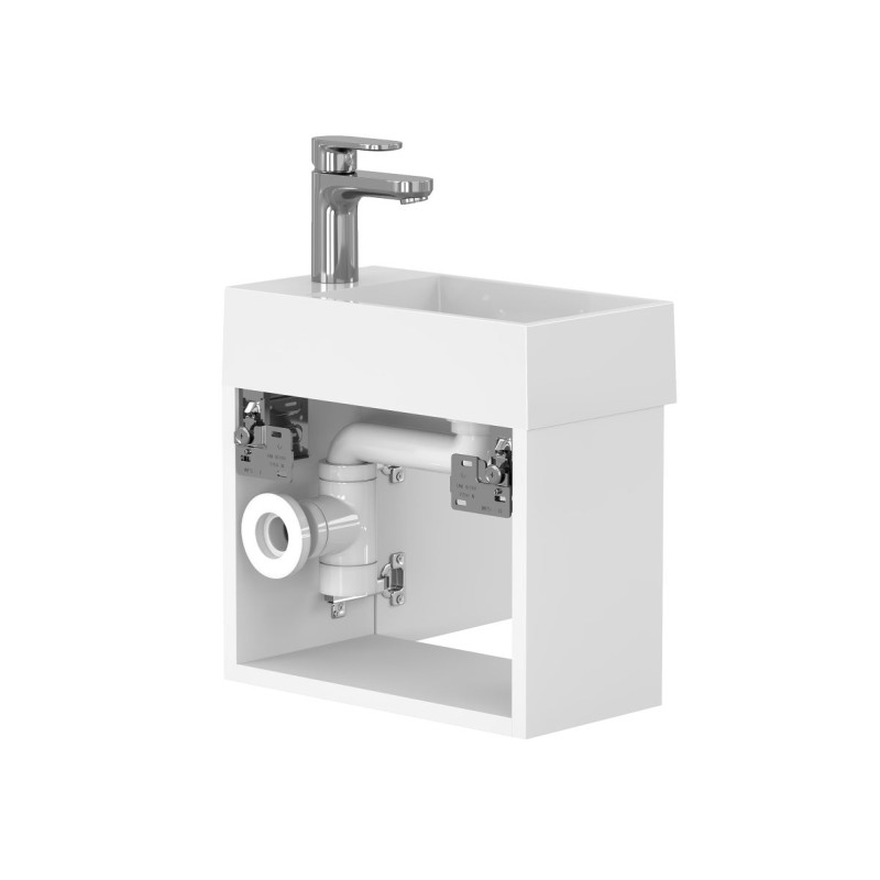 Тумба підвісна MINIMA біла матова з умивальником COPPER 400 від бренду MIRAGGIO — практичне та стильне рішення для ванної кімнати дому, готелю чи апартаментів.