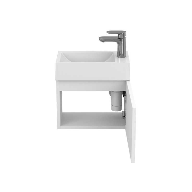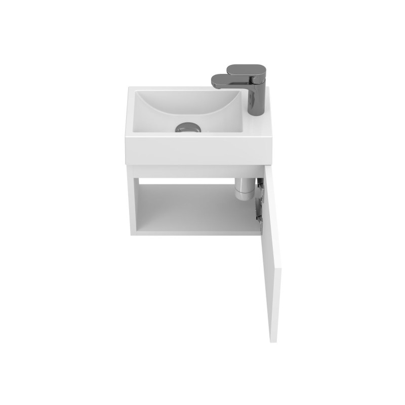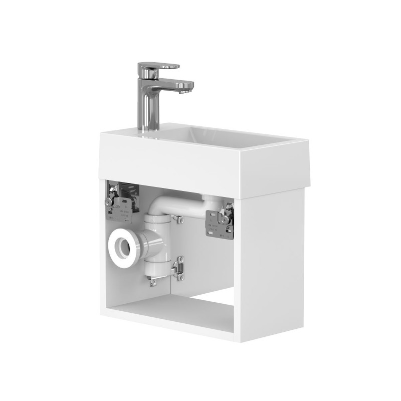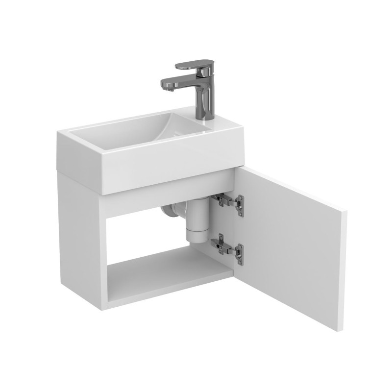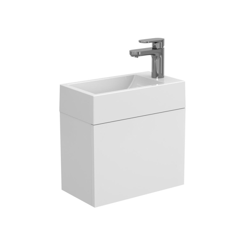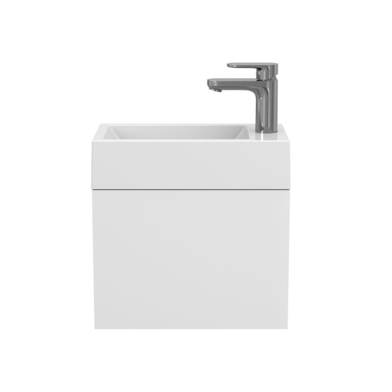 Тумба підвісна MINIMA біла матова з умивальником FARO від бренду MIRAGGIO — практичне та стильне рішення для ванної кімнати дому, готелю чи апартаментів.