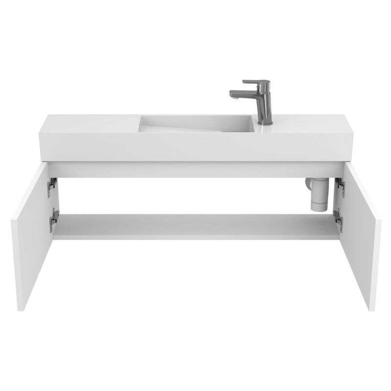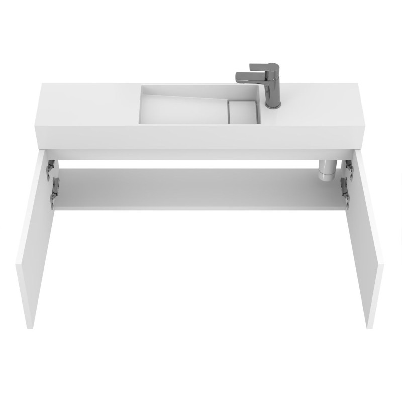 Тумба підвісна MINIMA біла матова з умивальником TONI 1050 від бренду MIRAGGIO — практичне та стильне рішення для ванної кімнати дому, готелю чи апартаментів.