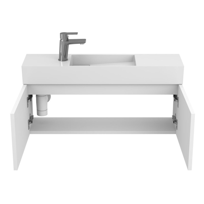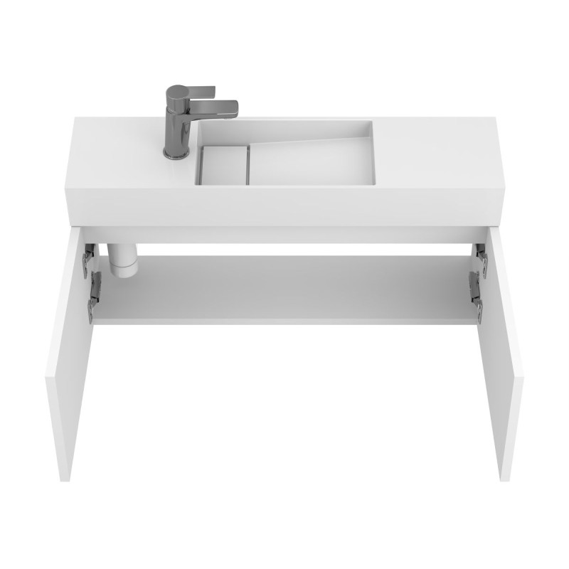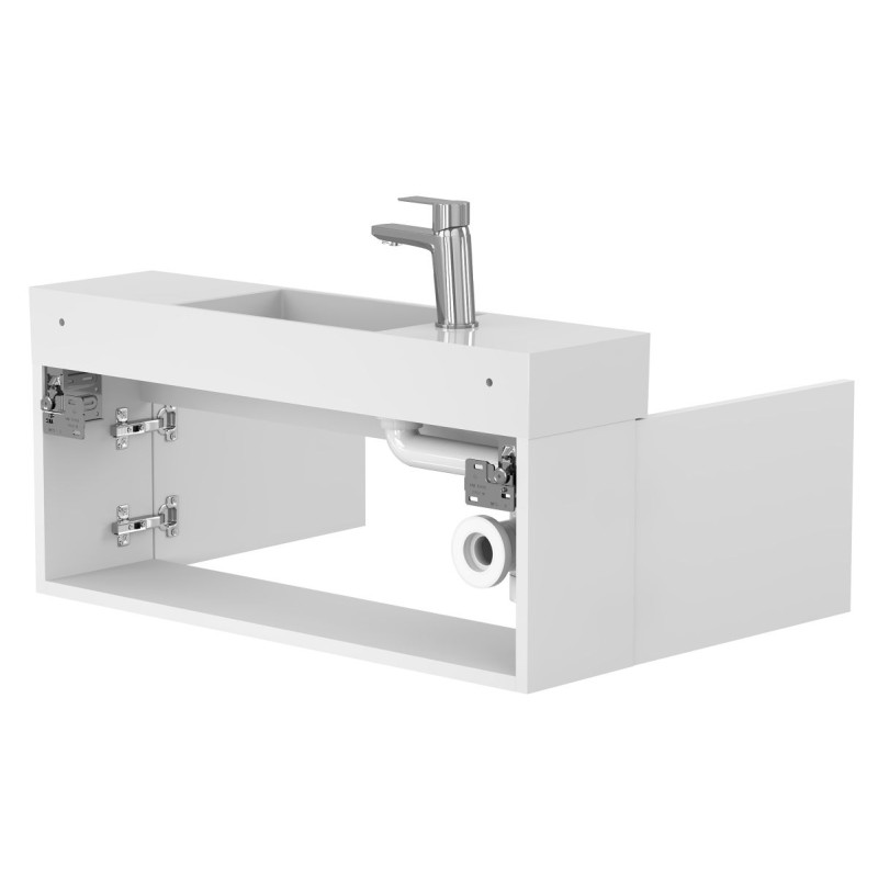 Тумба підвісна MINIMA біла матова з умивальником TONI 850 від бренду MIRAGGIO — практичне та стильне рішення для ванної кімнати дому, готелю чи апартаментів.