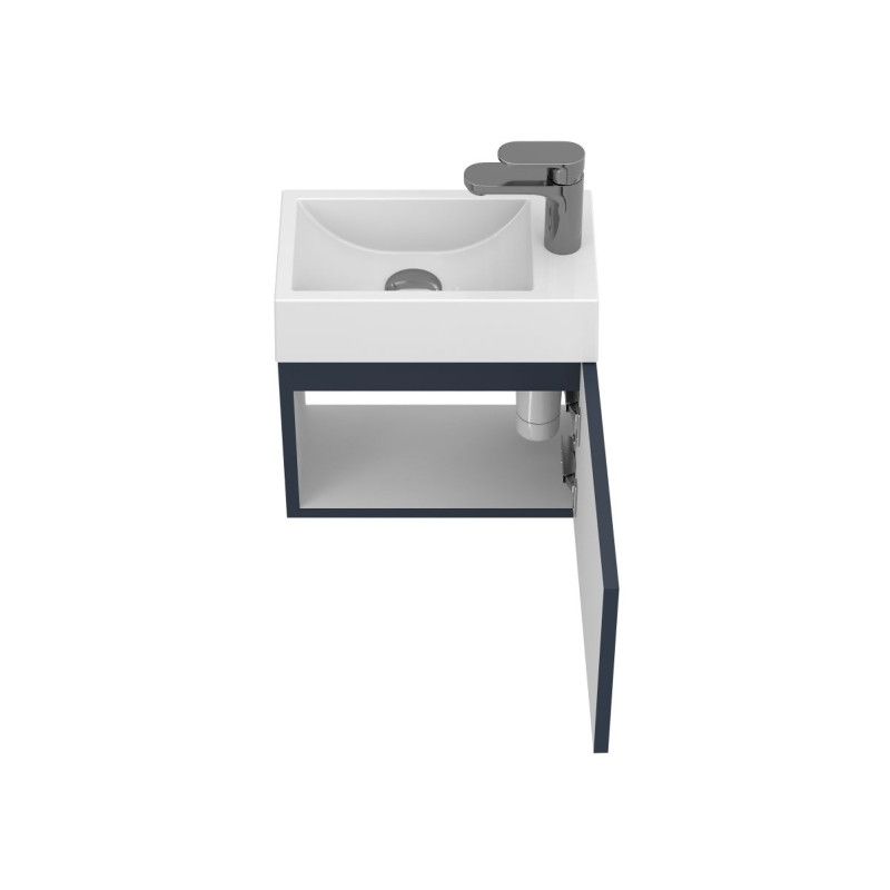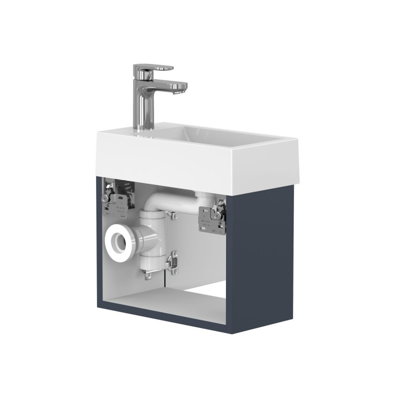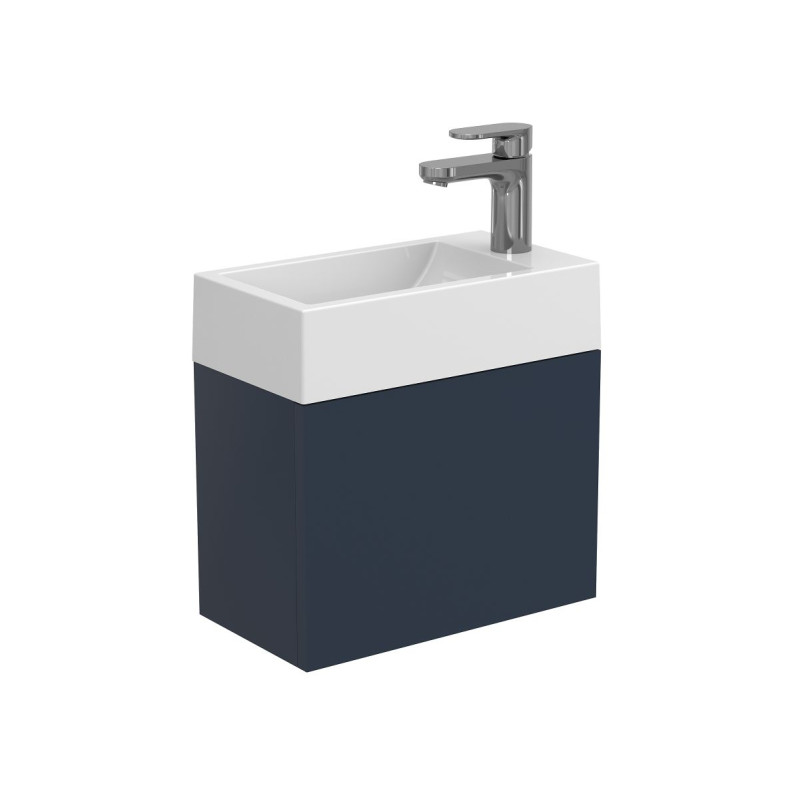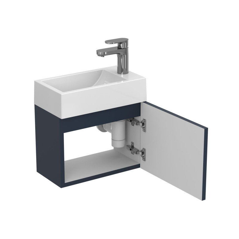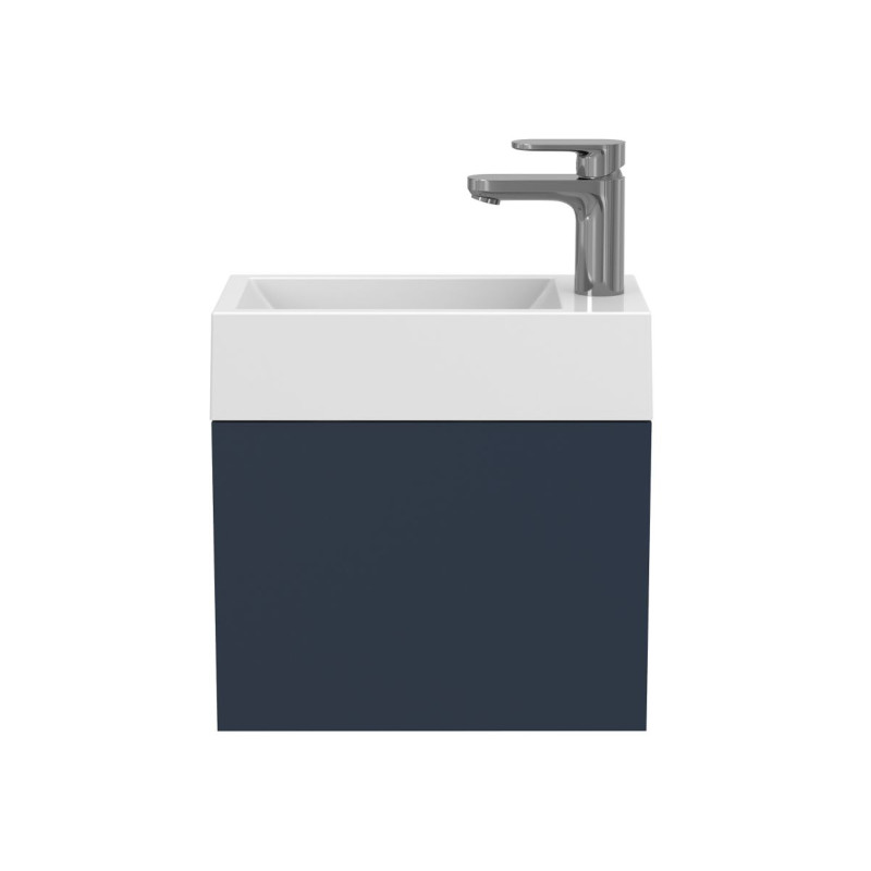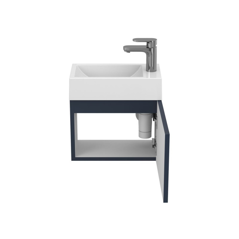 Тумба підвісна MINIMA синя з умивальником FARO від бренду MIRAGGIO — практичне та стильне рішення для ванної кімнати дому, готелю чи апартаментів.