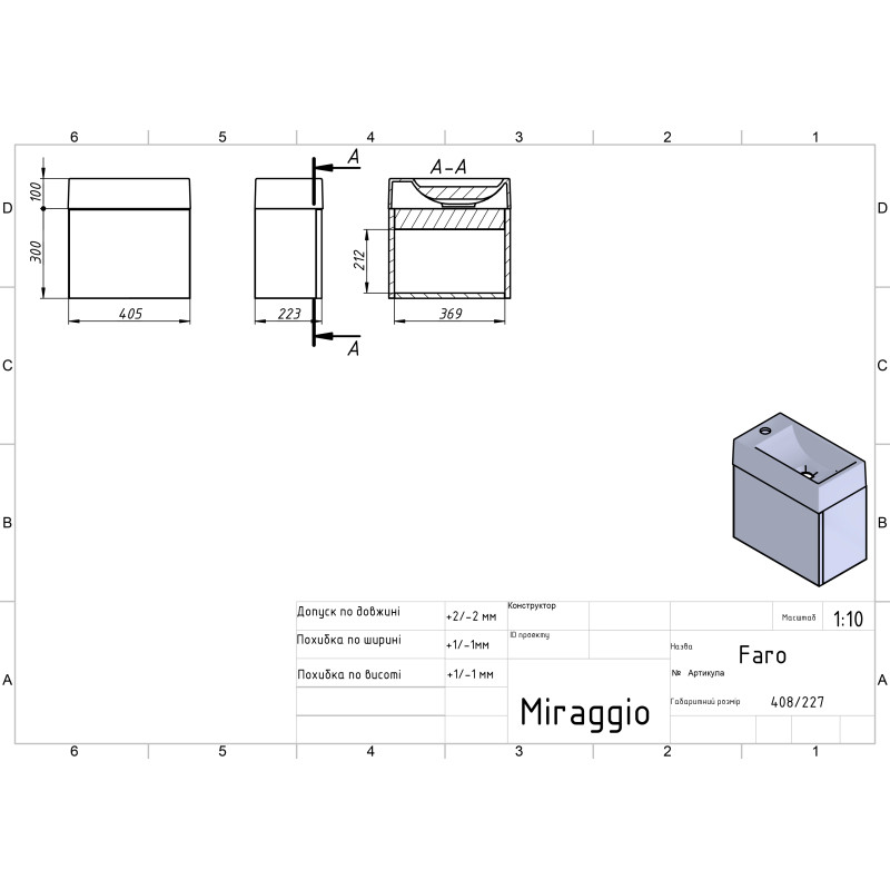 | Комплектація | Умивальник, тумба у зібраному вигляді |