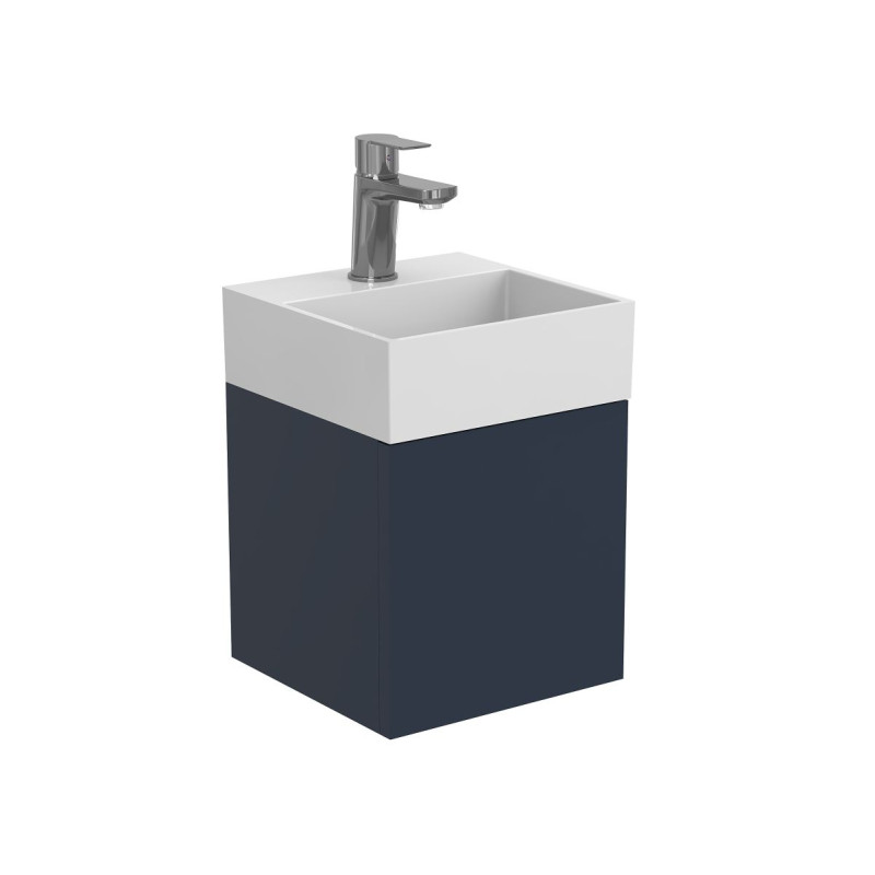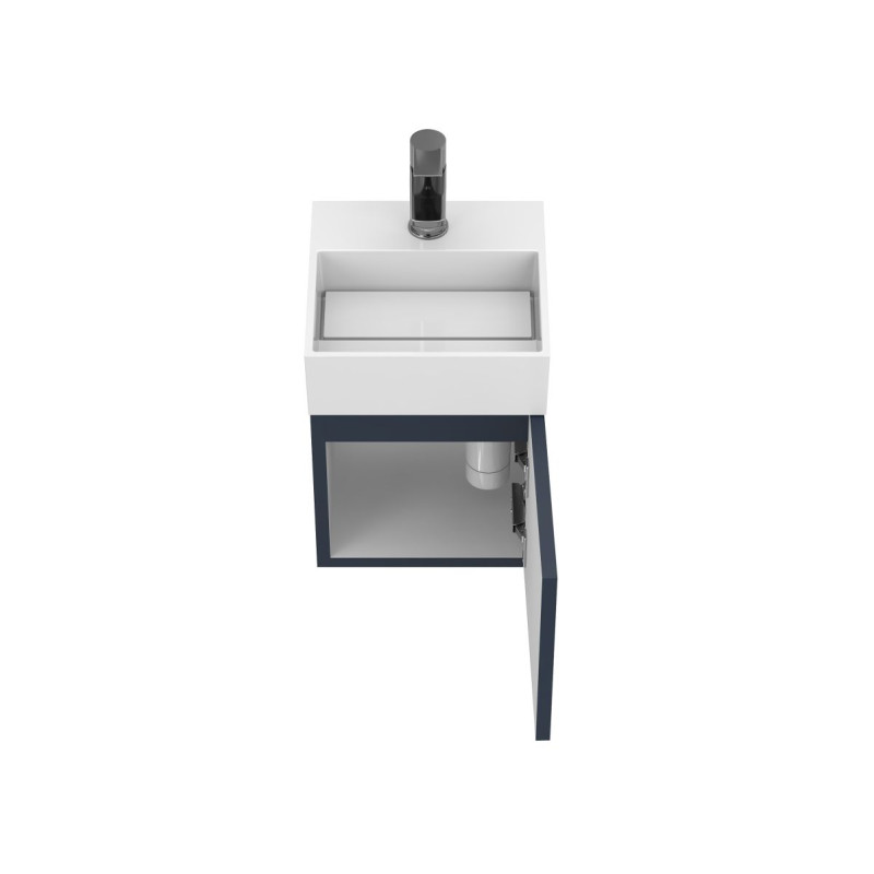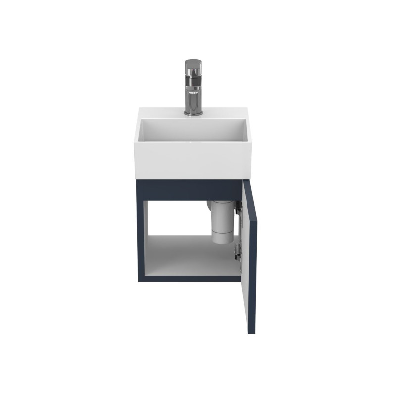Тумба підвісна MINIMA синя з умивальником TONI 300 від бренду MIRAGGIO — практичне та стильне рішення для ванної кімнати дому, готелю чи апартаментів.