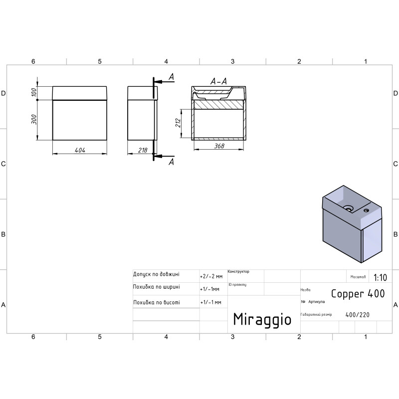 | Комплектація | Умивальник, тумба у зібраному вигляді |