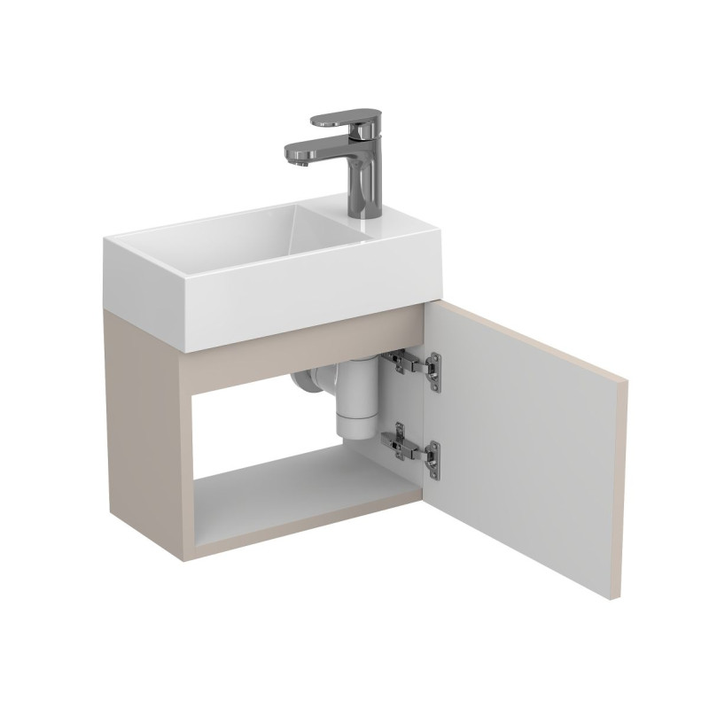 Тумба підвісна MINIMA сіра з умивальником COPPER 400 від бренду MIRAGGIO — практичне та стильне рішення для ванної кімнати дому, готелю чи апартаментів.