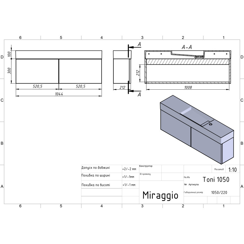 | Комплектація | Умивальник, тумба у зібраному вигляді |