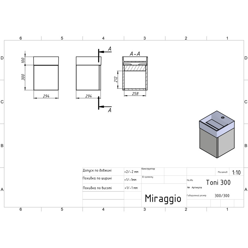 | Раковина в комплекті | TONI 300 |