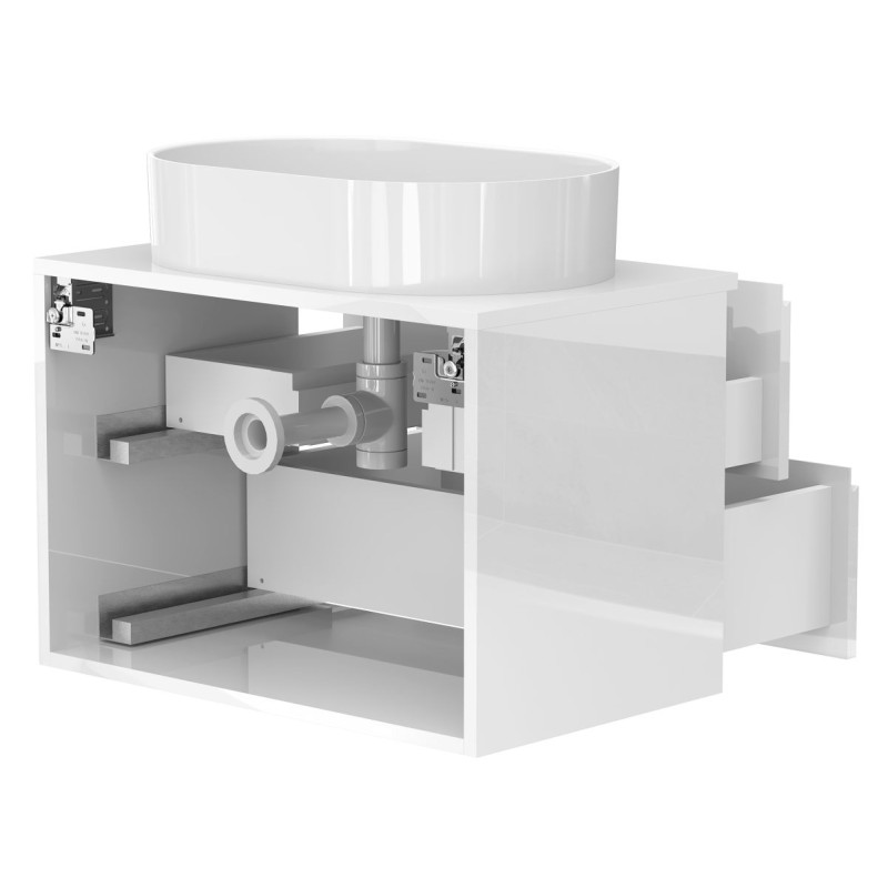 Тумба підвісна MONO 700 Біла глянцева з умивальником KIRA від бренду MIRAGGIO — практичне та стильне рішення для ванної кімнати дому, готелю чи апартаментів.
