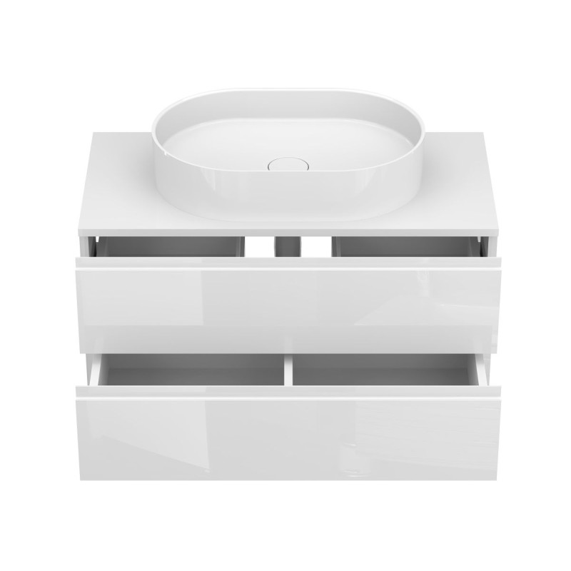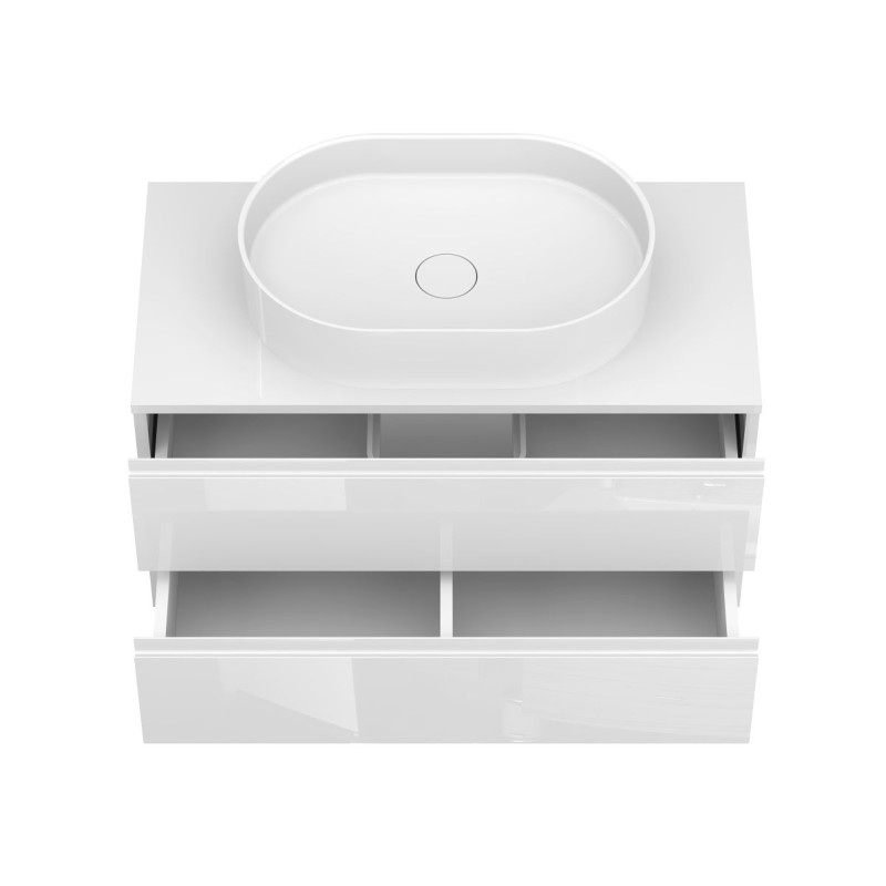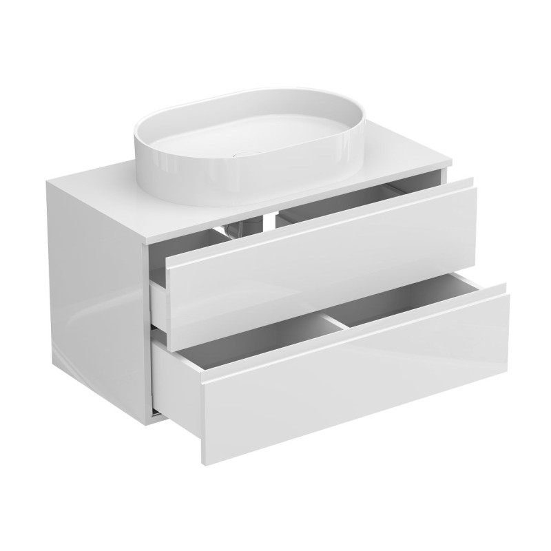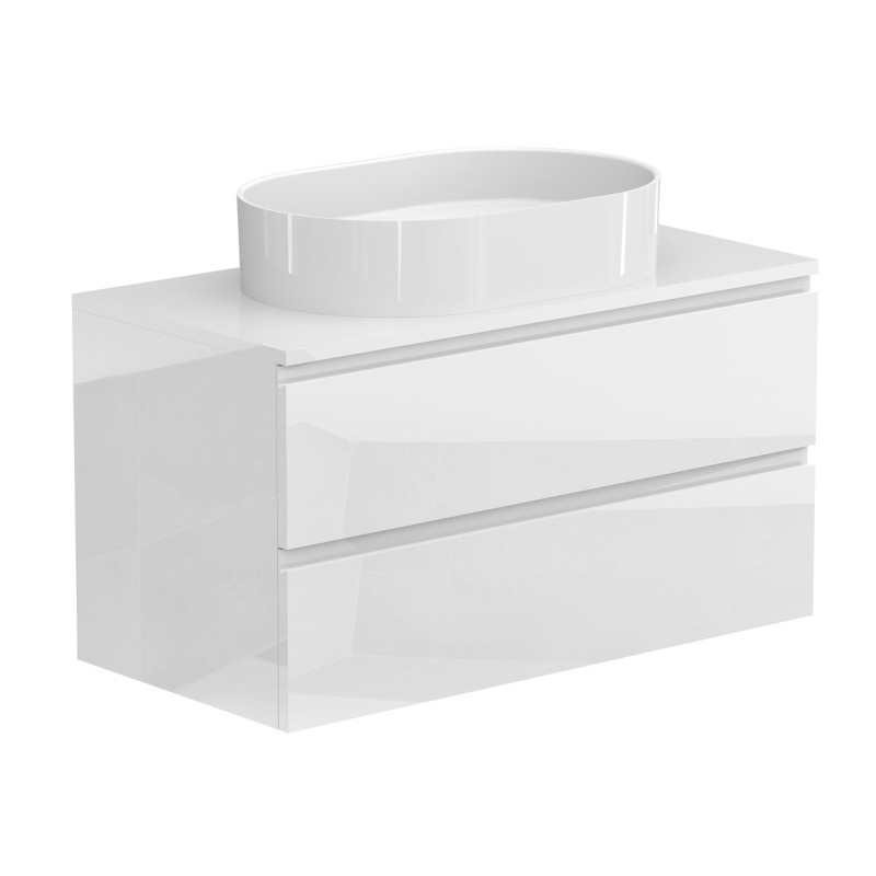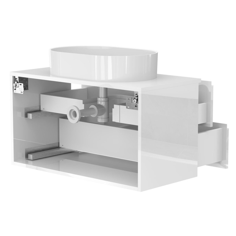 Тумба підвісна MONO 900 Біла глянцева з умивальником KIRA від бренду MIRAGGIO — практичне та стильне рішення для ванної кімнати дому, готелю чи апартаментів.