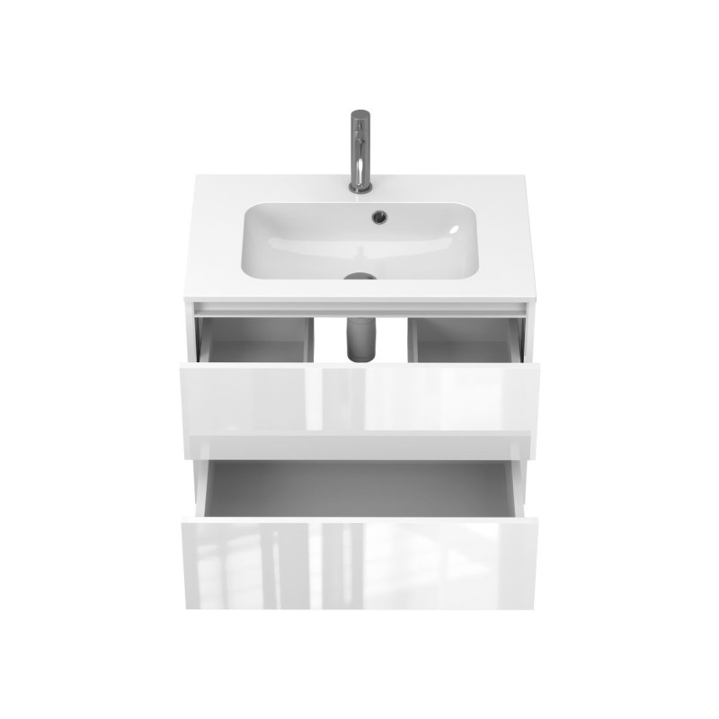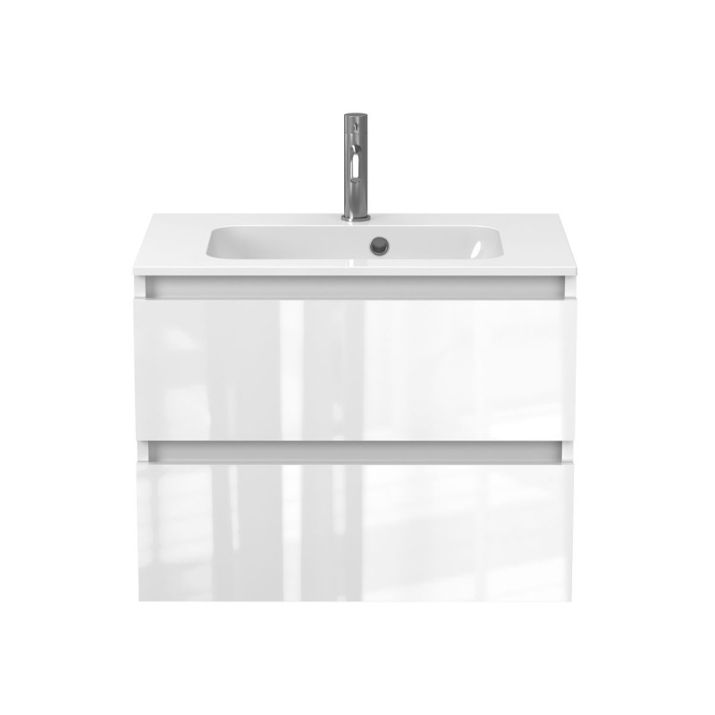 Тумба підвісна NATURA біла глянцева з умивальником DELLA 700 від бренду MIRAGGIO — практичне та стильне рішення для ванної кімнати дому, готелю чи апартаментів.