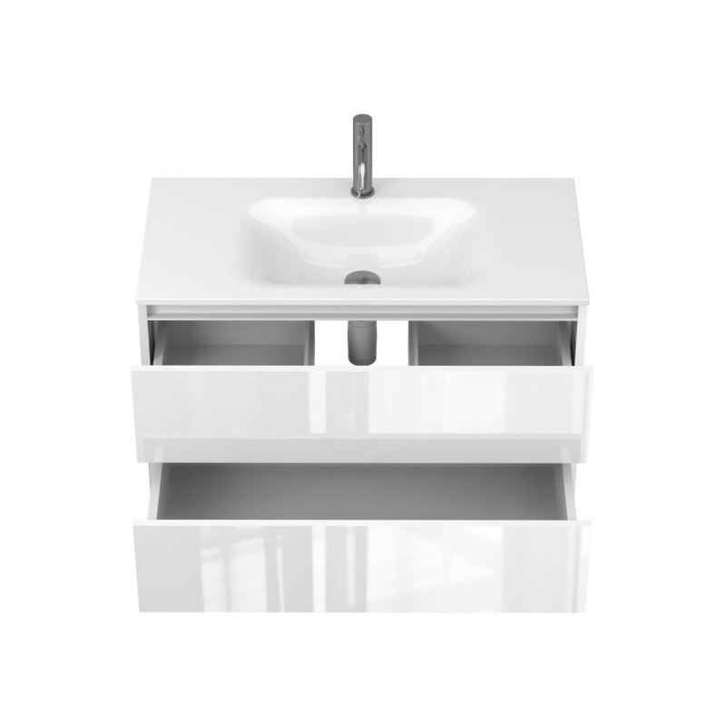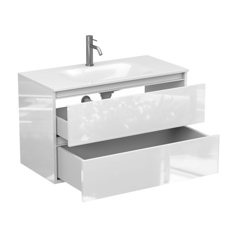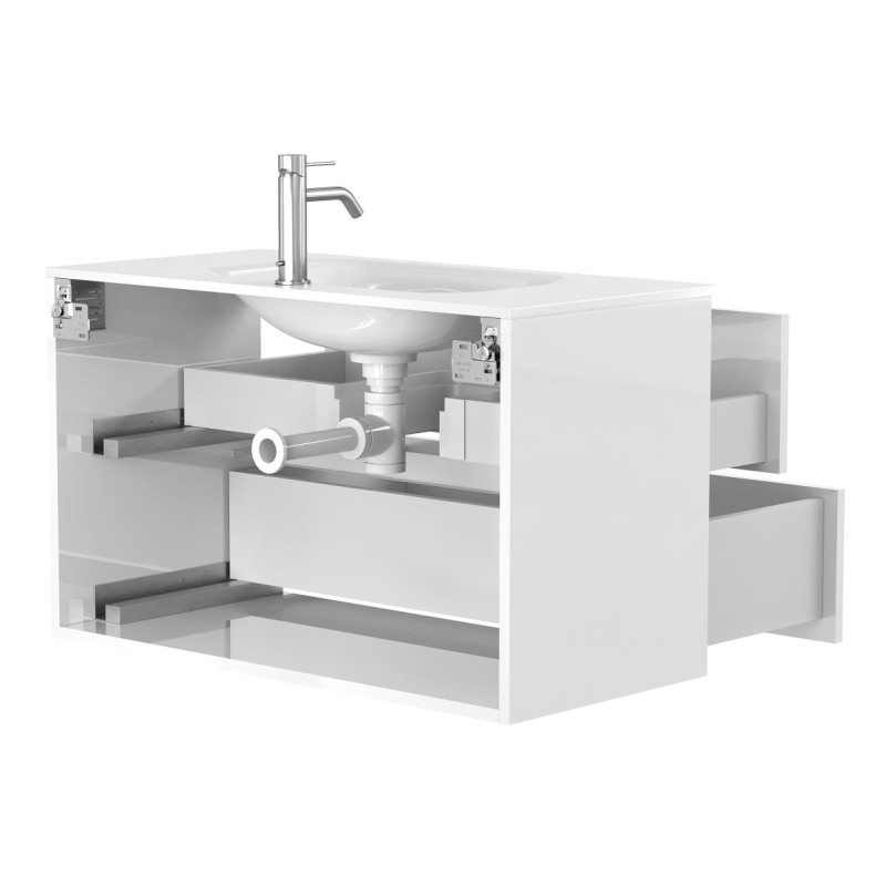 Тумба підвісна NATURA біла глянцева з умивальником JESSEL 900 від бренду MIRAGGIO — практичне та стильне рішення для ванної кімнати дому, готелю чи апартаментів.