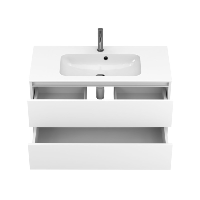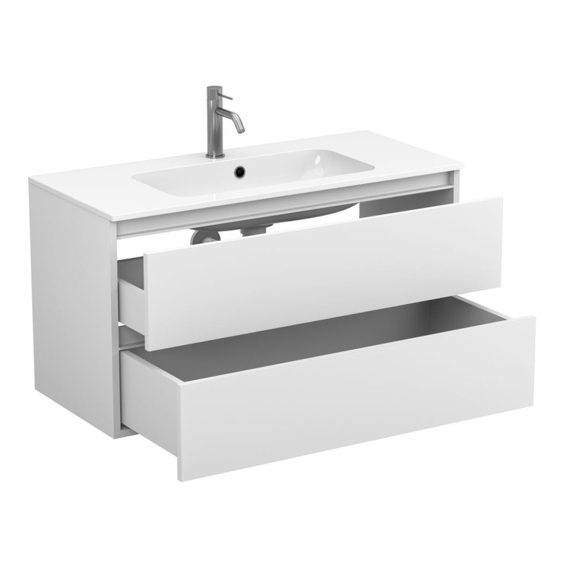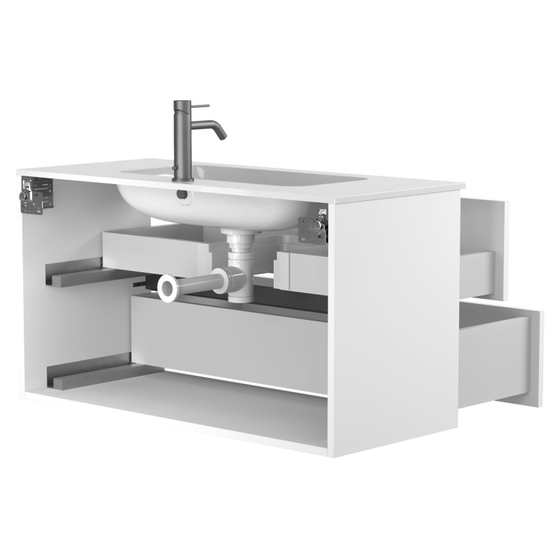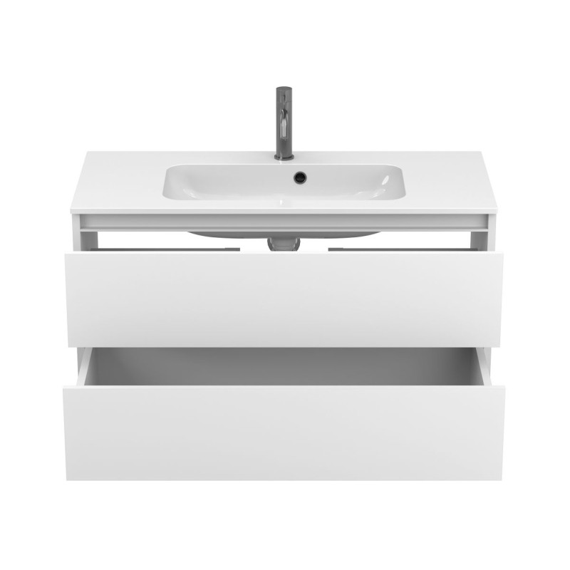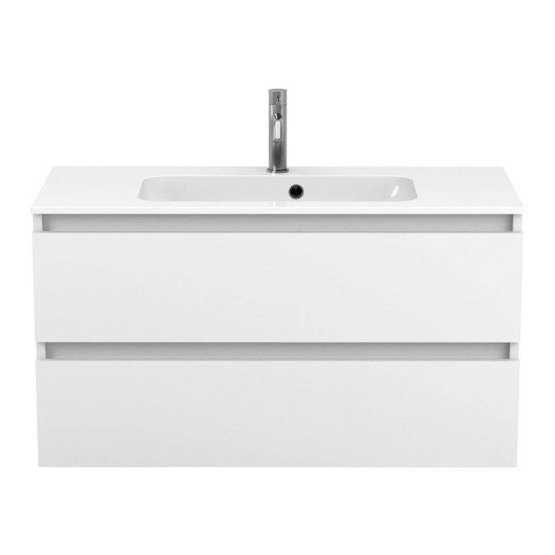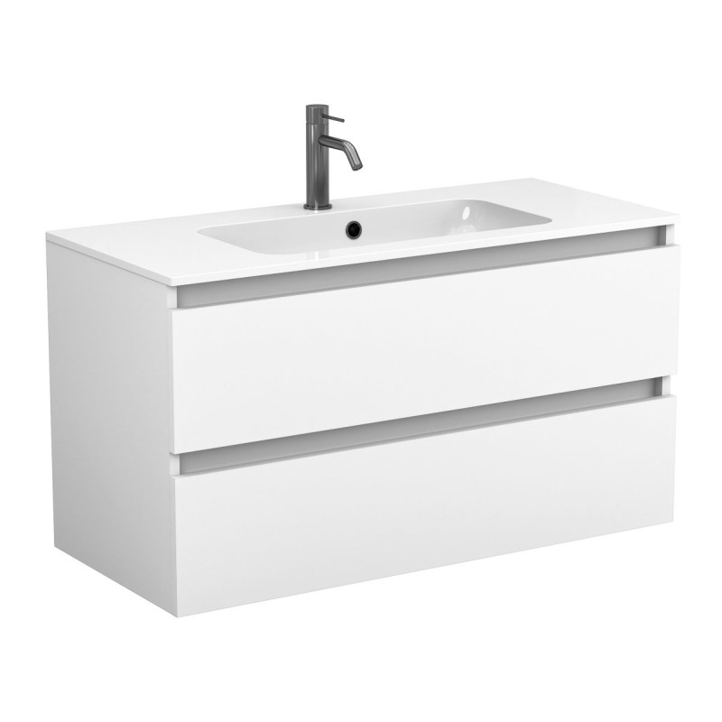 Тумба підвісна NATURA біла матова з умивальником DELLA 1000 від бренду MIRAGGIO — практичне та стильне рішення для ванної кімнати дому, готелю чи апартаментів.