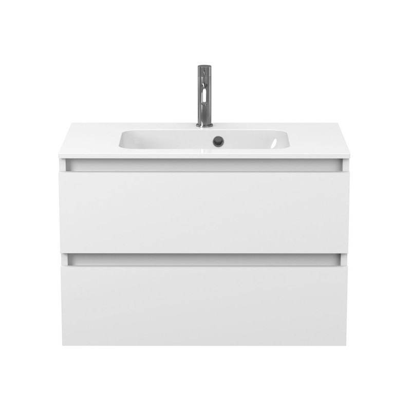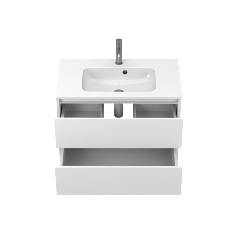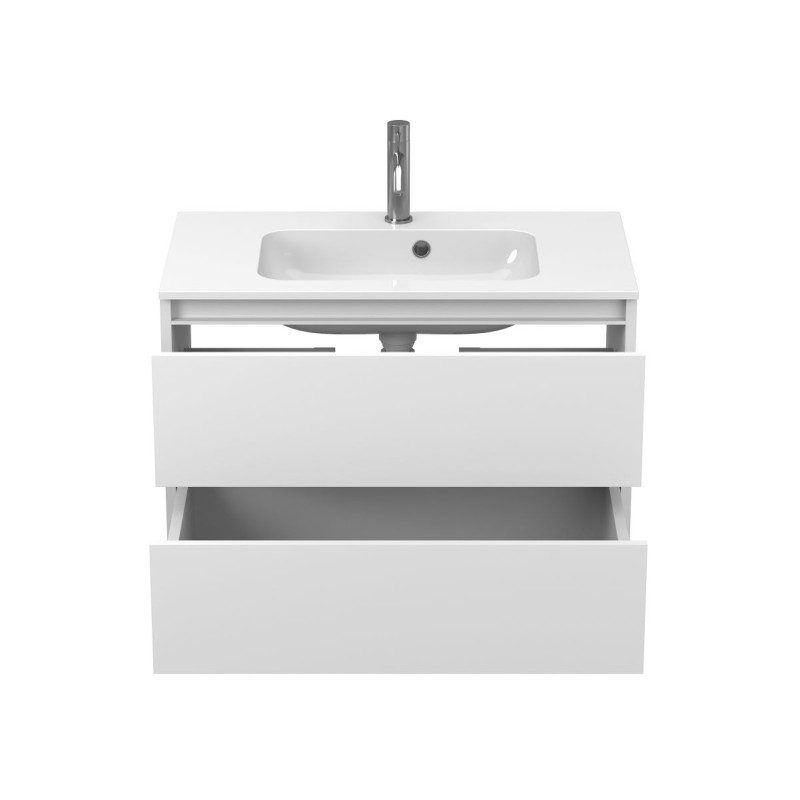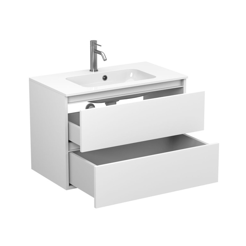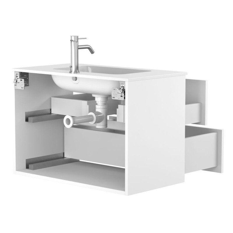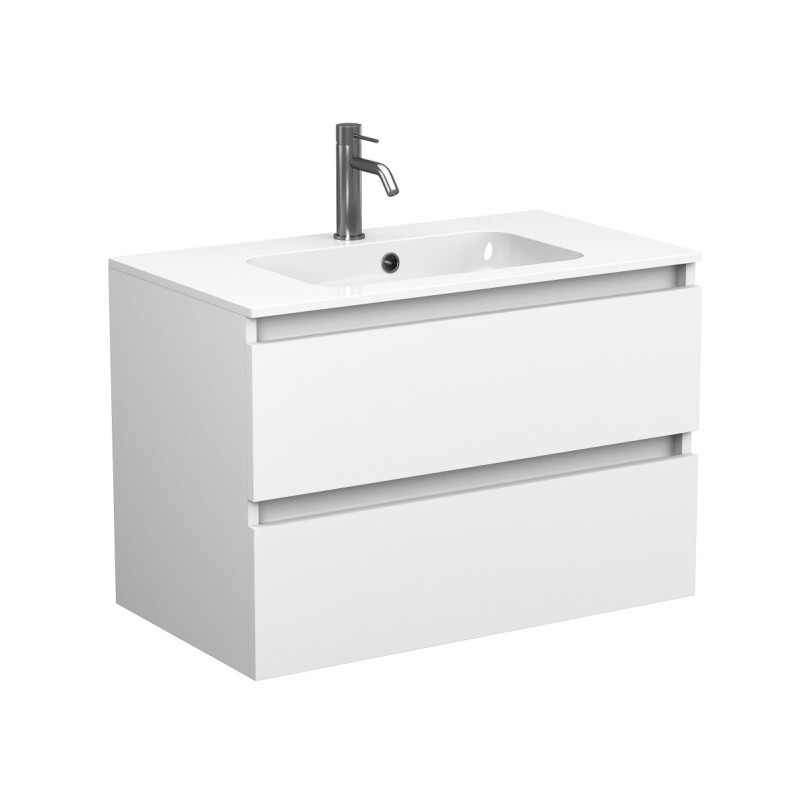 Тумба підвісна NATURA біла матова з умивальником DELLA 800 від бренду MIRAGGIO — практичне та стильне рішення для ванної кімнати дому, готелю чи апартаментів.