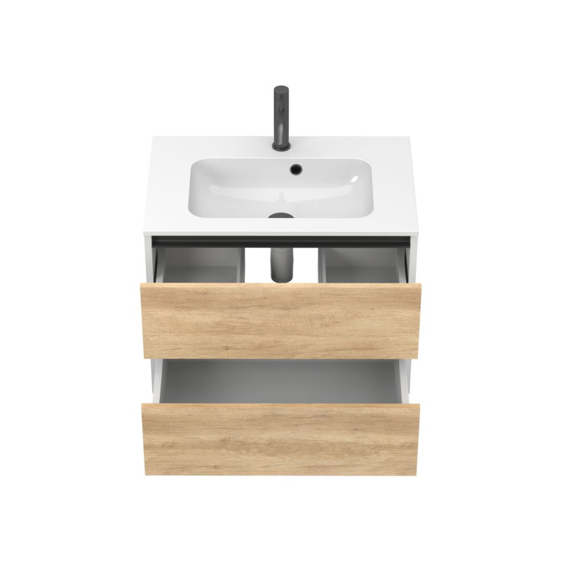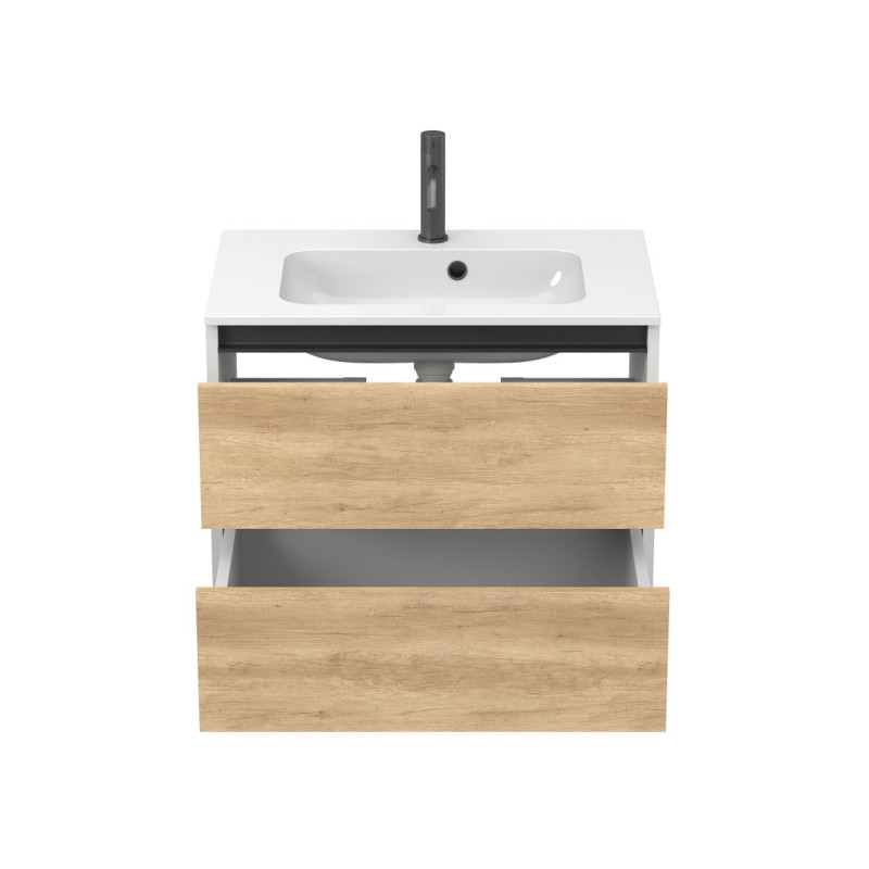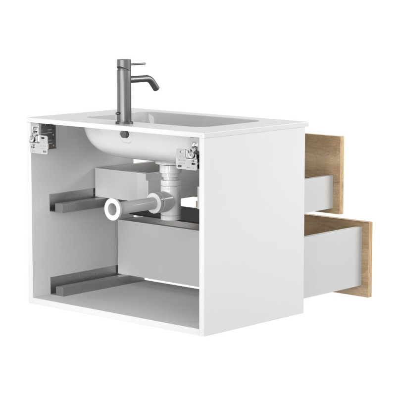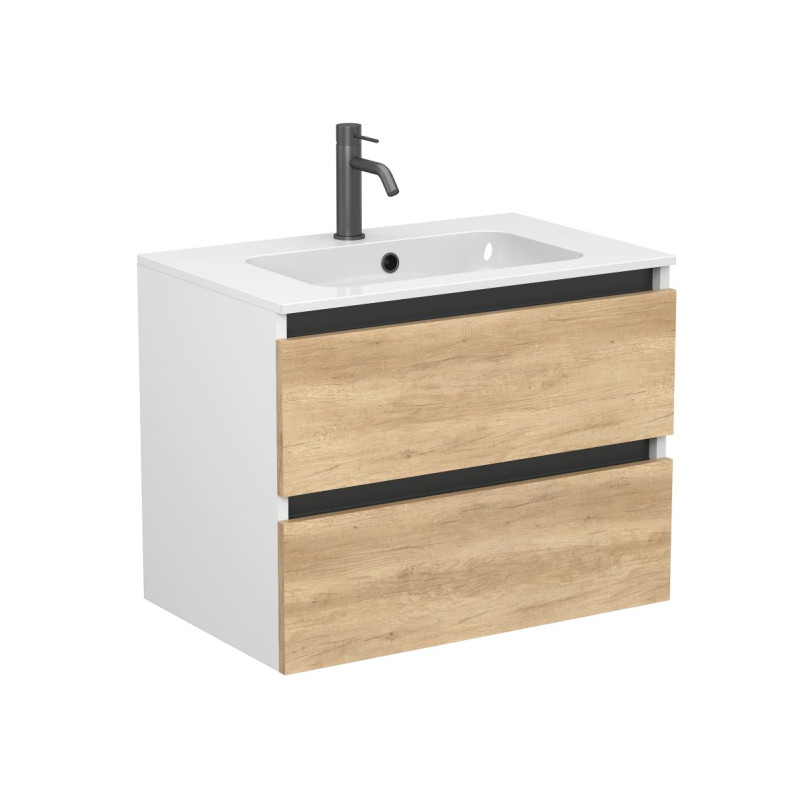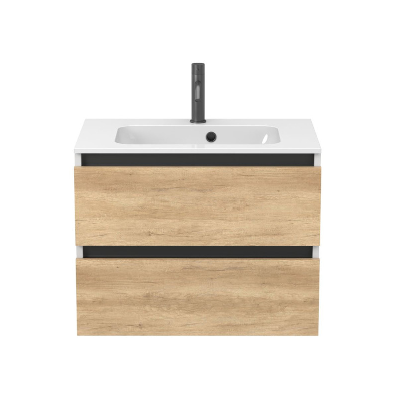 Тумба підвісна NATURA Дуб Небраска з умивальником DELLA 700 від бренду MIRAGGIO — практичне та стильне рішення для ванної кімнати дому, готелю чи апартаментів.