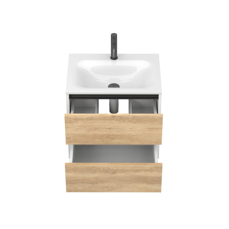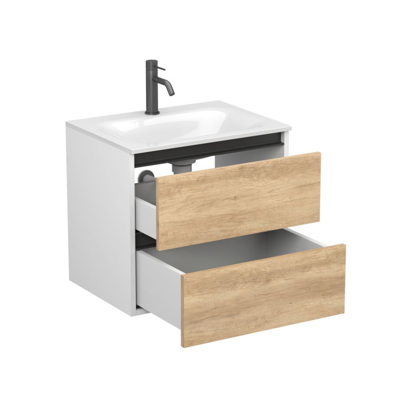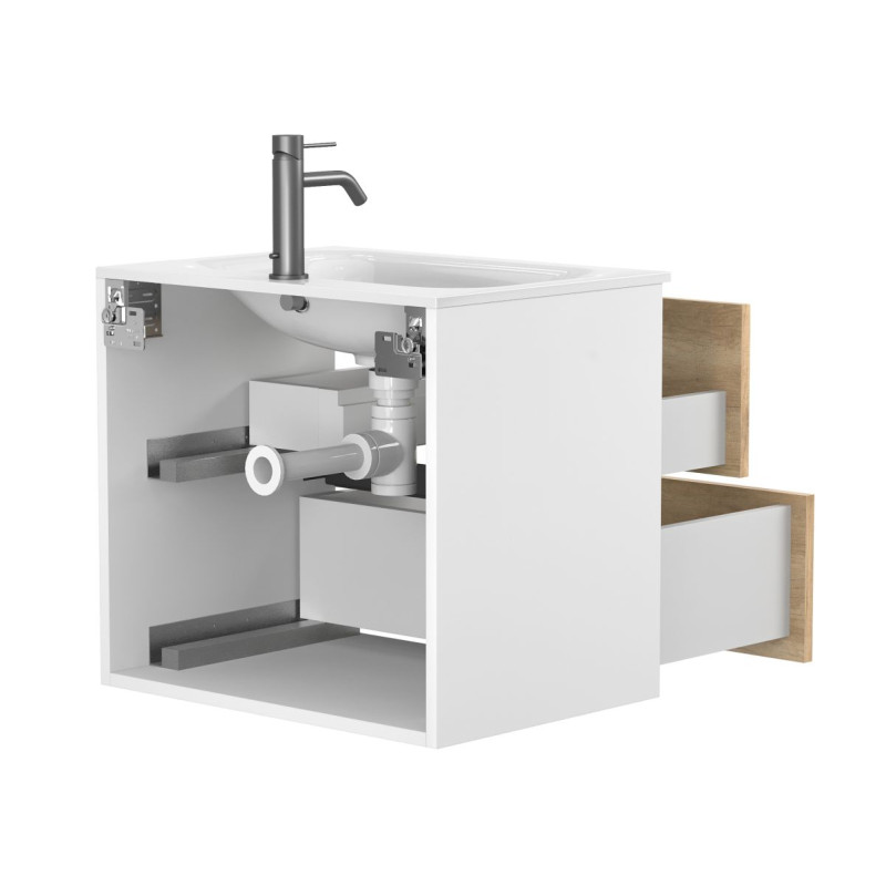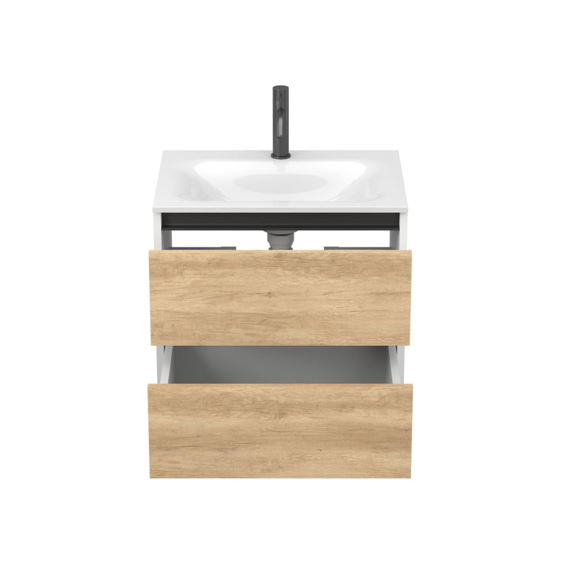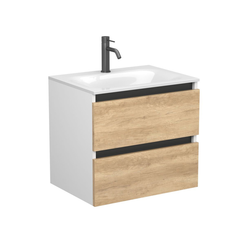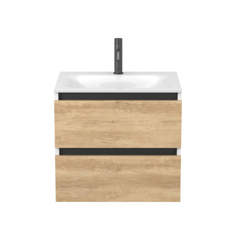 Тумба підвісна NATURA Дуб Небраска з умивальником JESSEL 600 від бренду MIRAGGIO — практичне та стильне рішення для ванної кімнати дому, готелю чи апартаментів.