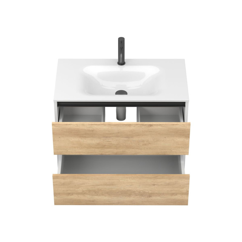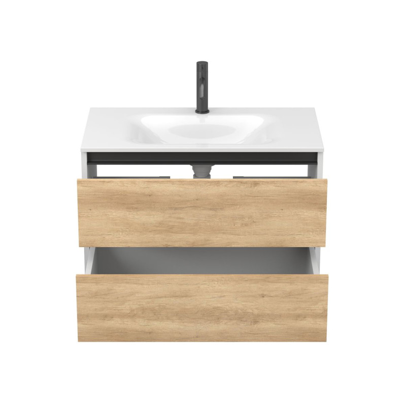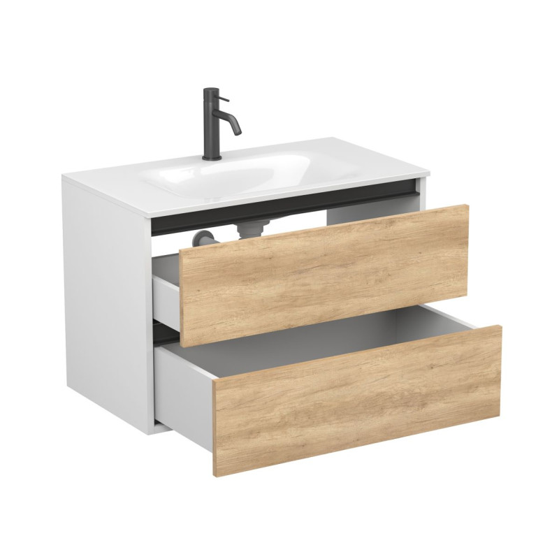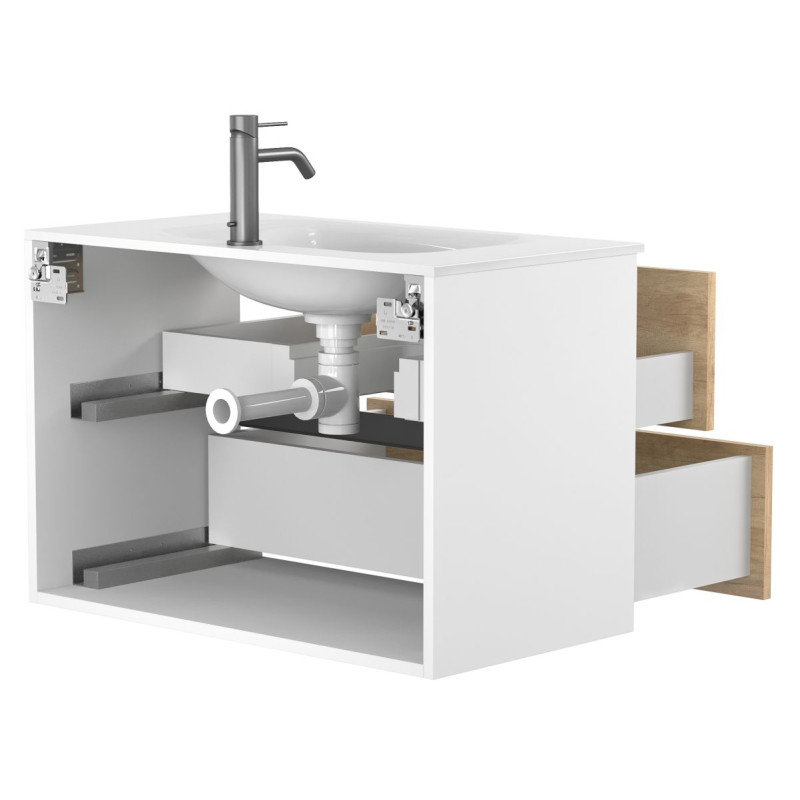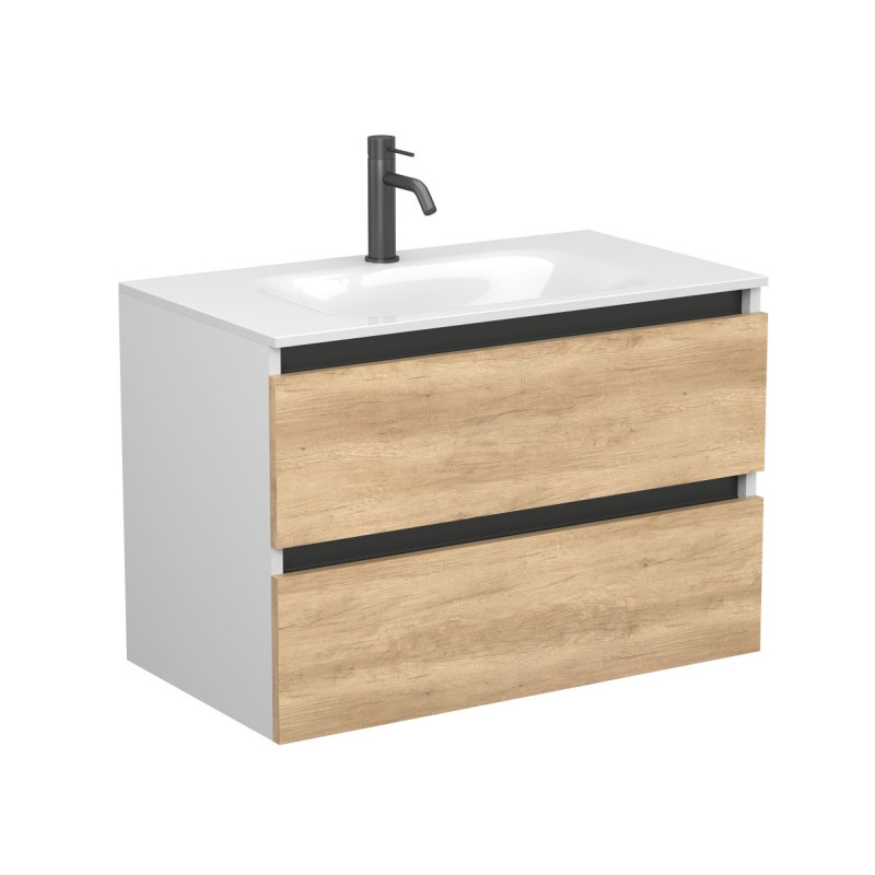 Тумба підвісна NATURA Дуб Небраска з умивальником JESSEL 800 від бренду MIRAGGIO — практичне та стильне рішення для ванної кімнати дому, готелю чи апартаментів.