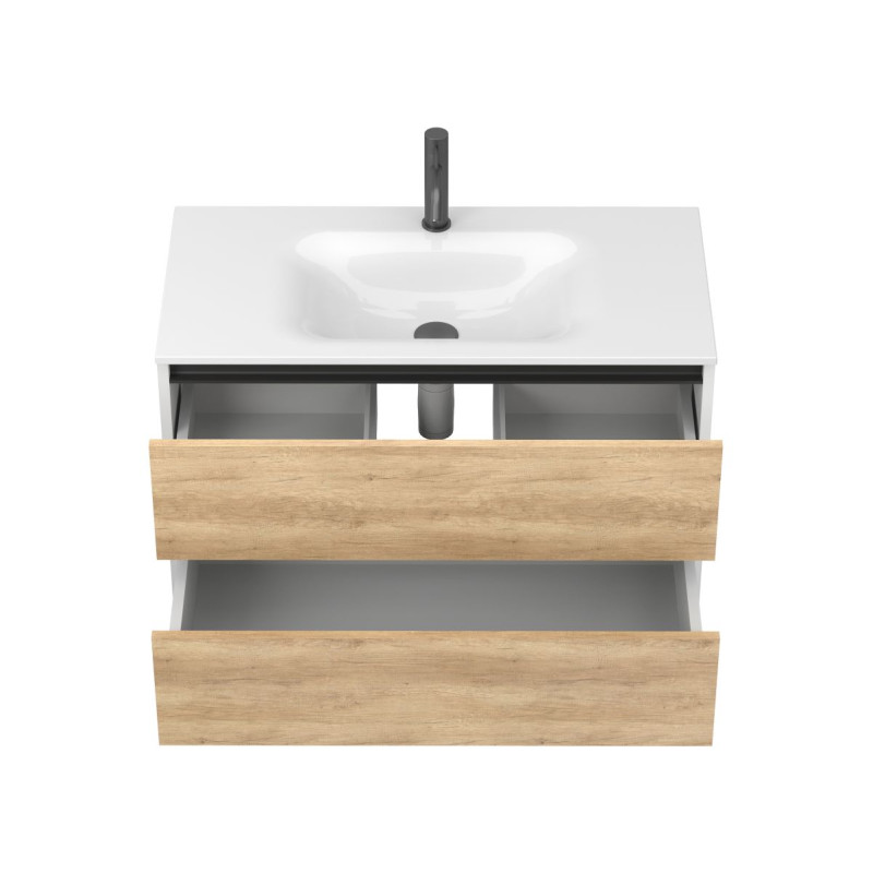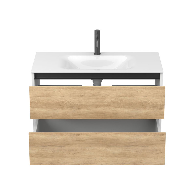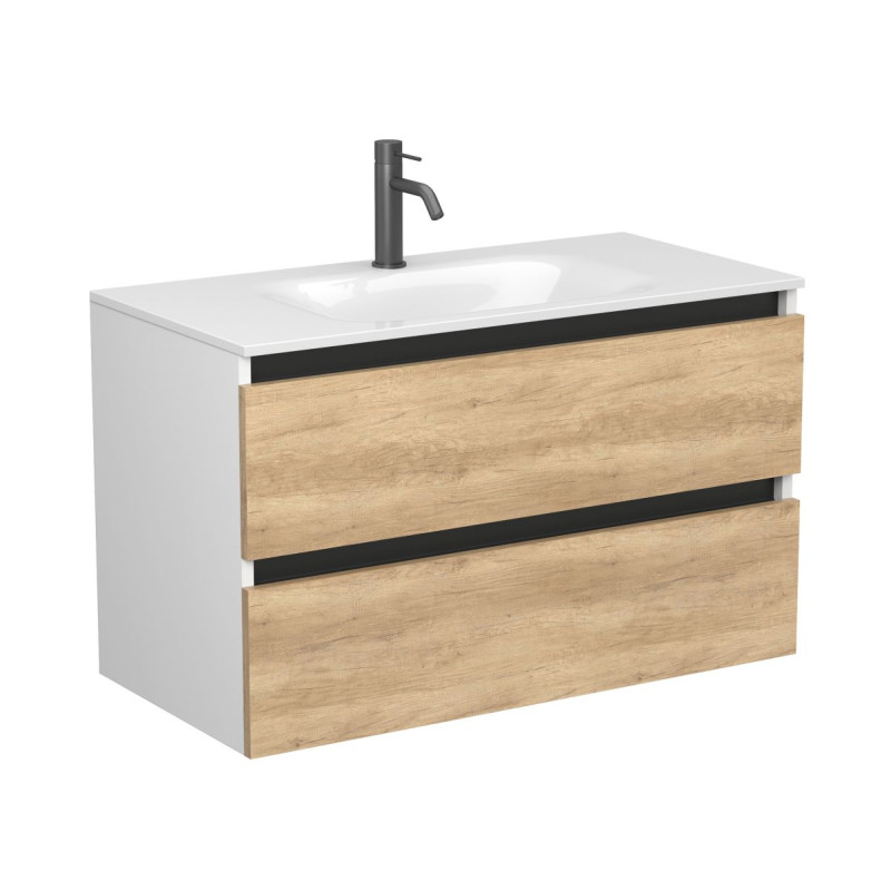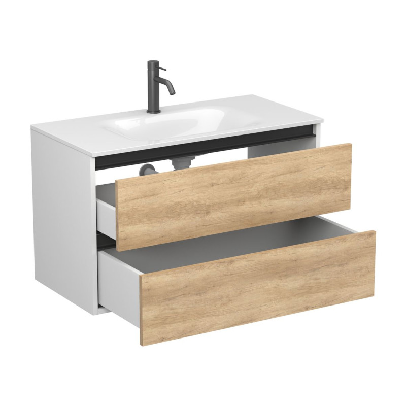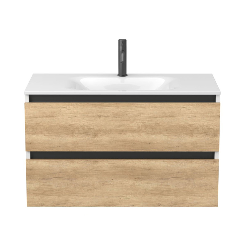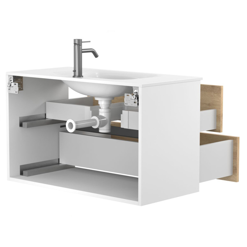 Тумба підвісна NATURA Дуб Небраска з умивальником JESSEL 900 від бренду MIRAGGIO — практичне та стильне рішення для ванної кімнати дому, готелю чи апартаментів.