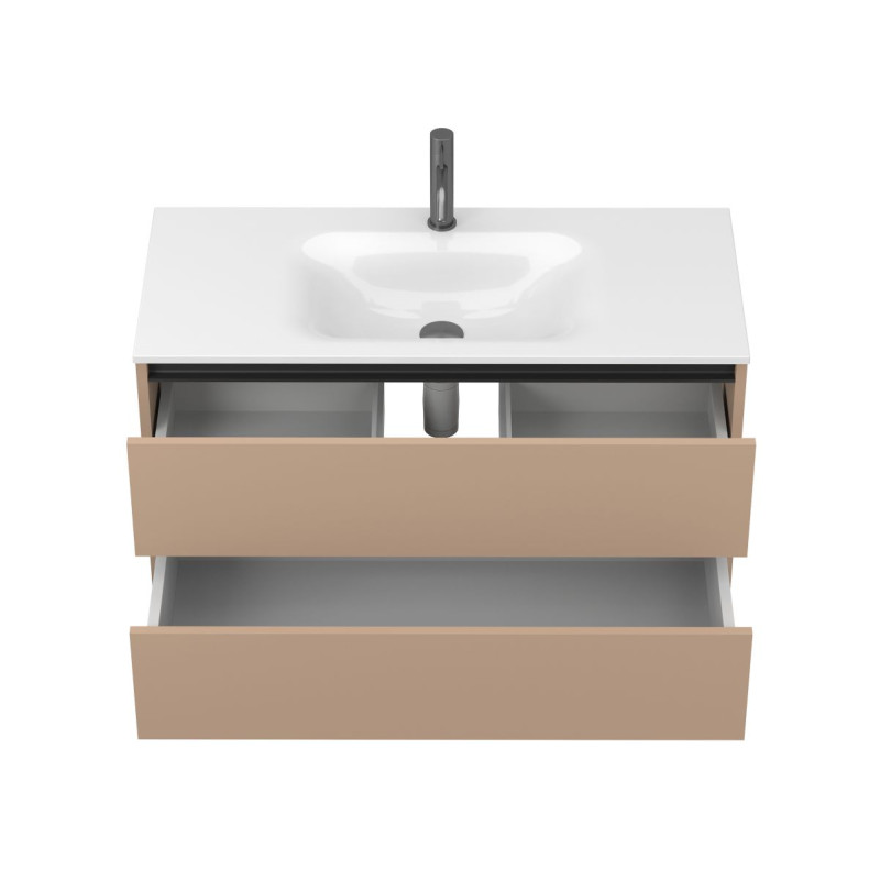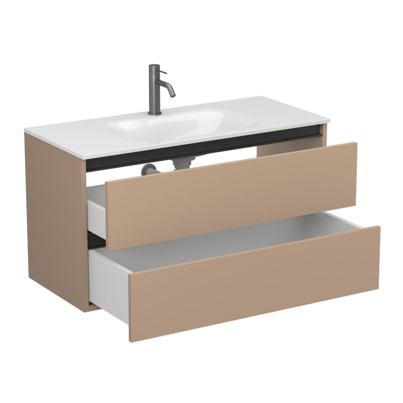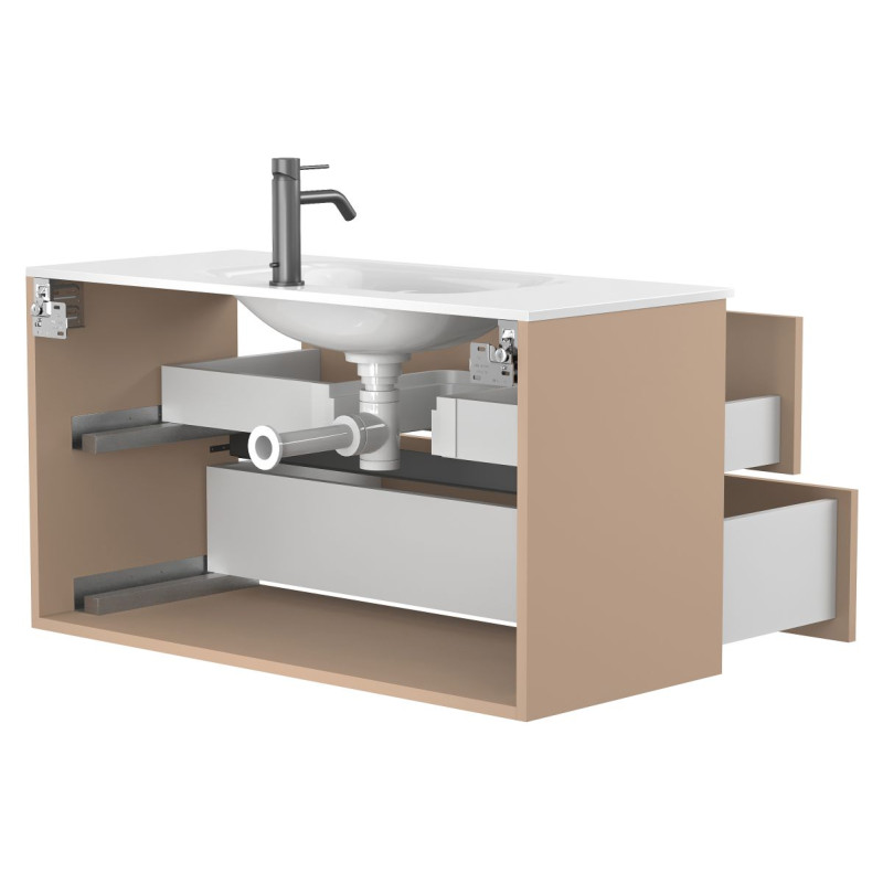 Тумба підвісна NATURA капучіно, з умивальником JESSEL 1000 від бренду MIRAGGIO — практичне та стильне рішення для ванної кімнати дому, готелю чи апартаментів.