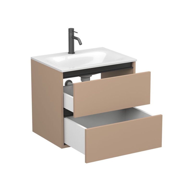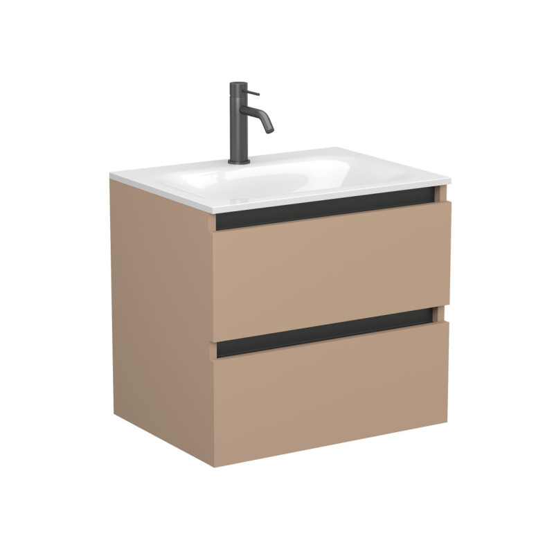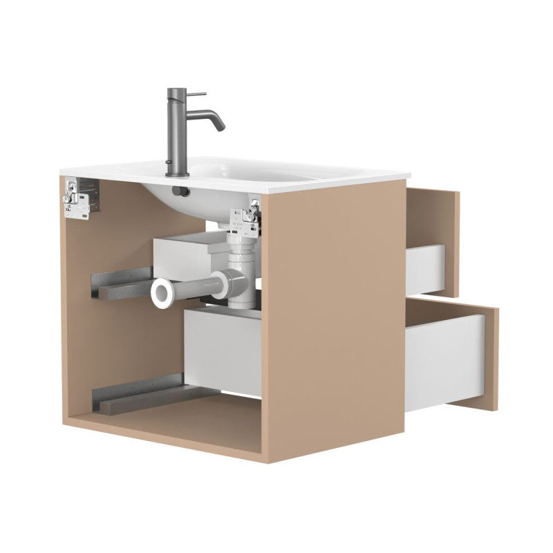 Тумба підвісна NATURA капучіно, з умивальником JESSEL 600 від бренду MIRAGGIO — практичне та стильне рішення для ванної кімнати дому, готелю чи апартаментів.