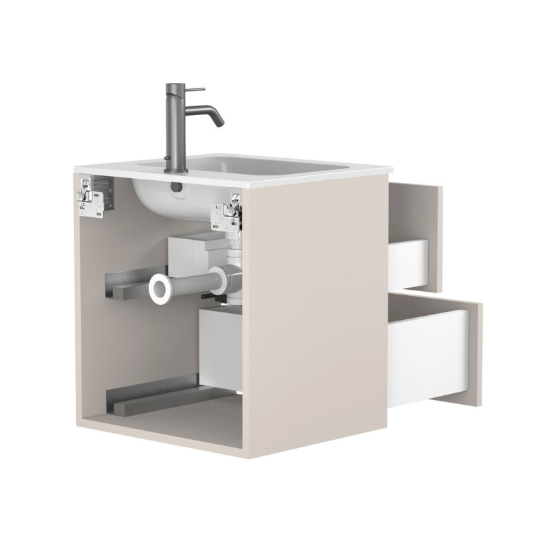 Тумба підвісна NATURA кашемір, ДСП, з умивальником DELLA 500 від бренду MIRAGGIO — практичне та стильне рішення для ванної кімнати дому, готелю чи апартаментів.