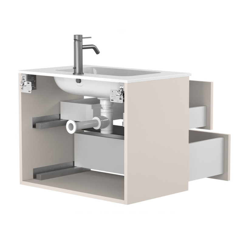 Тумба підвісна NATURA кашемір, ДСП з умивальником DELLA 700 від бренду MIRAGGIO — практичне та стильне рішення для ванної кімнати дому, готелю чи апартаментів.