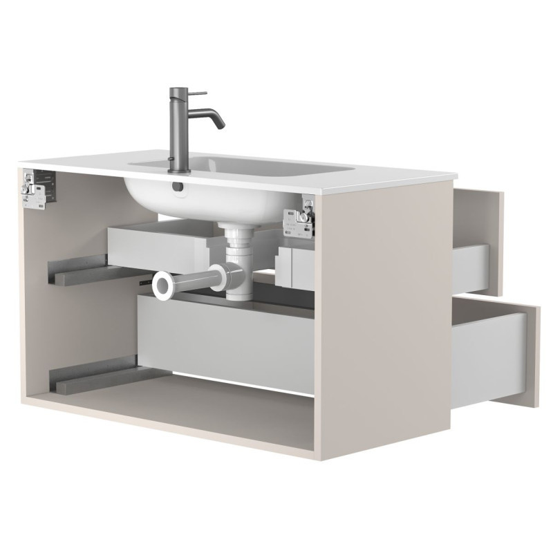 Тумба підвісна NATURA кашемір, ДСП з умивальником DELLA 900 від бренду MIRAGGIO — практичне та стильне рішення для ванної кімнати дому, готелю чи апартаментів.