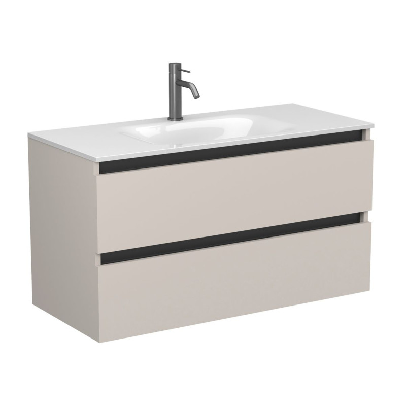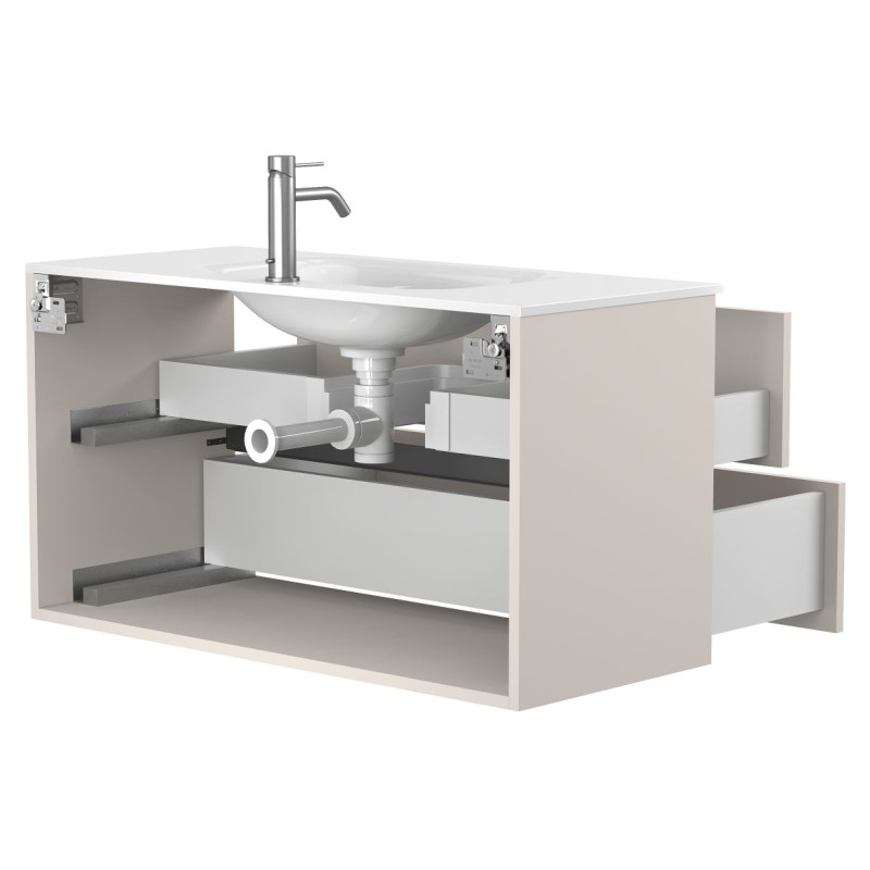 Тумба підвісна NATURA кашемір, ДСП з умивальником JESSEL 1000 від бренду MIRAGGIO — практичне та стильне рішення для ванної кімнати дому, готелю чи апартаментів.