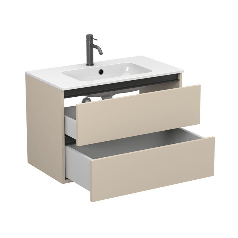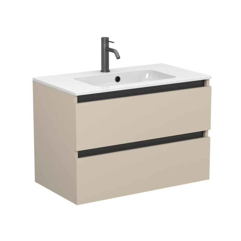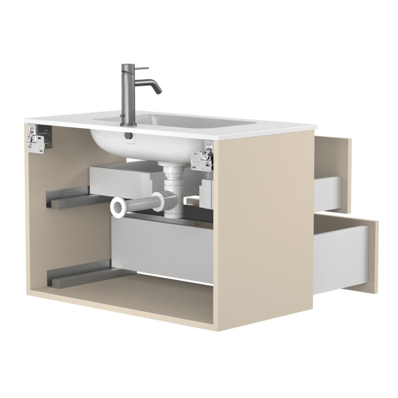 Тумба підвісна NATURA кашемір, МДФ, з умивальником DELLA 800 від бренду MIRAGGIO — практичне та стильне рішення для ванної кімнати дому, готелю чи апартаментів.