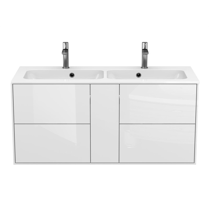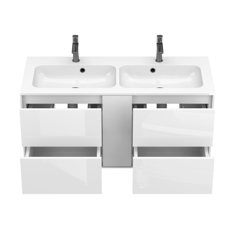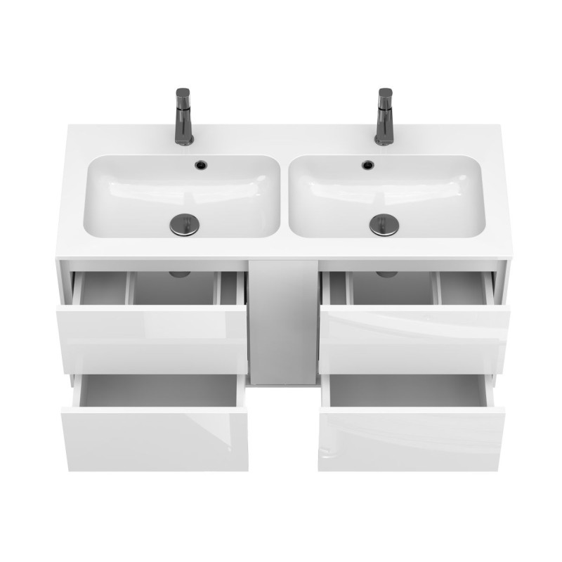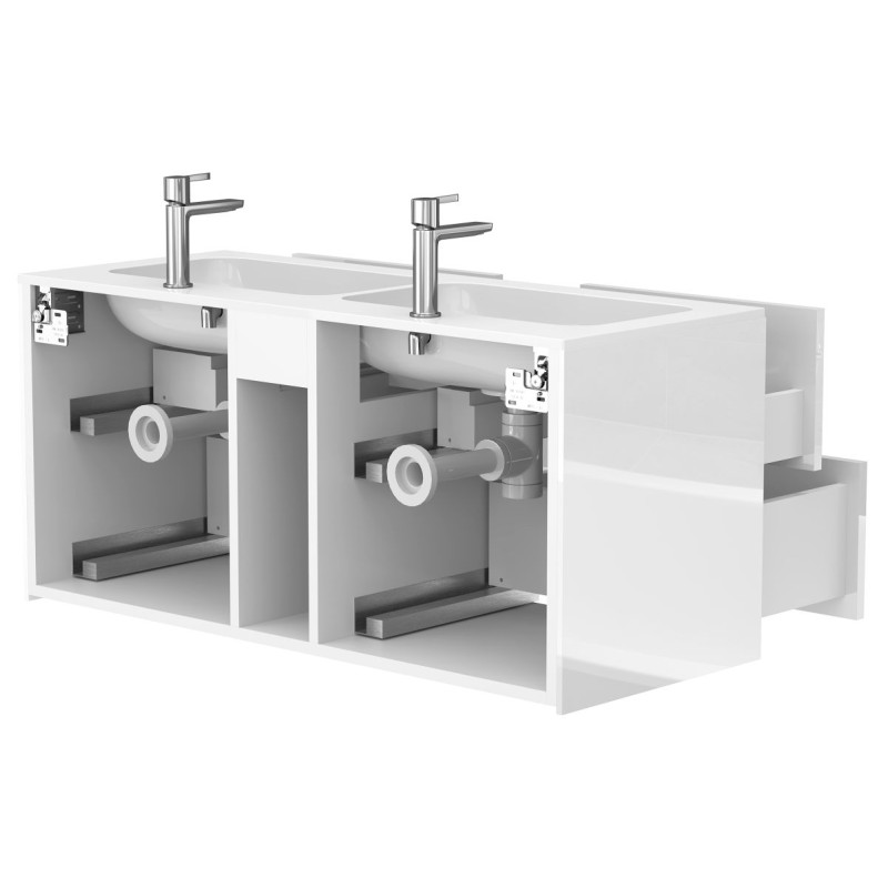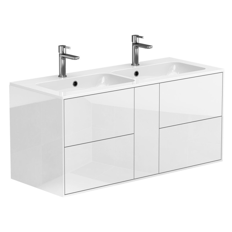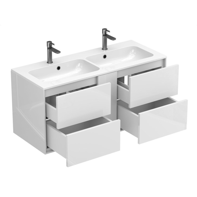 Тумба підвісна SPACE Біла глянцева з умивальником DELLA 1100 D від бренду MIRAGGIO — практичне та стильне рішення для ванної кімнати дому, готелю чи апартаментів.
