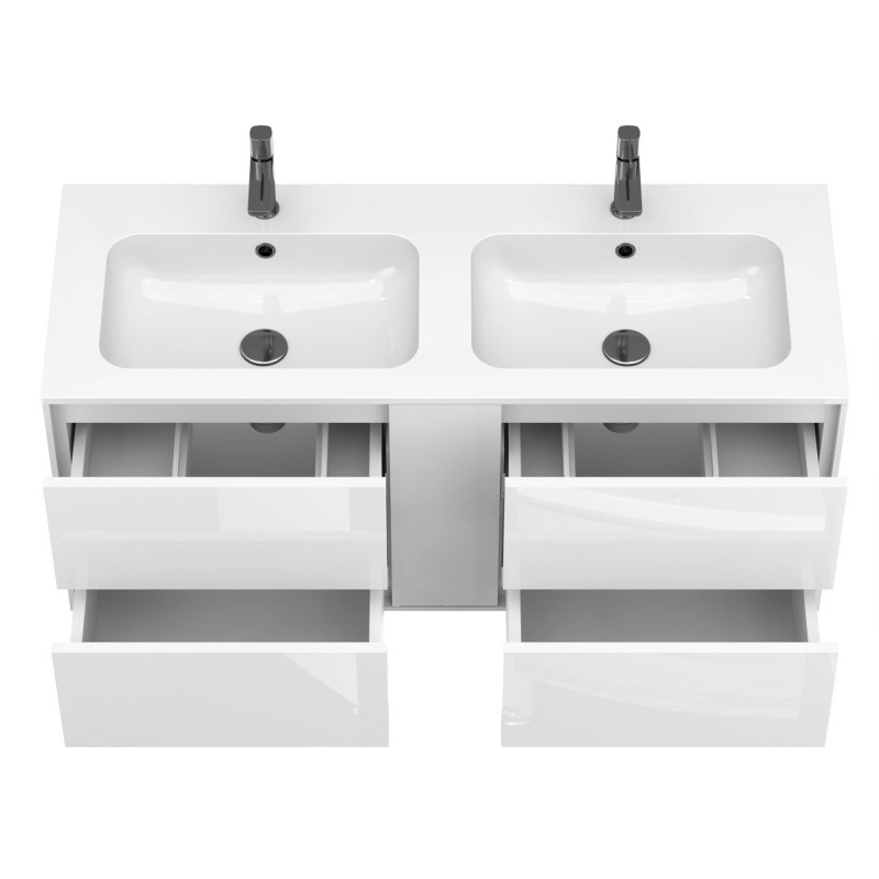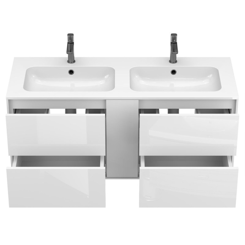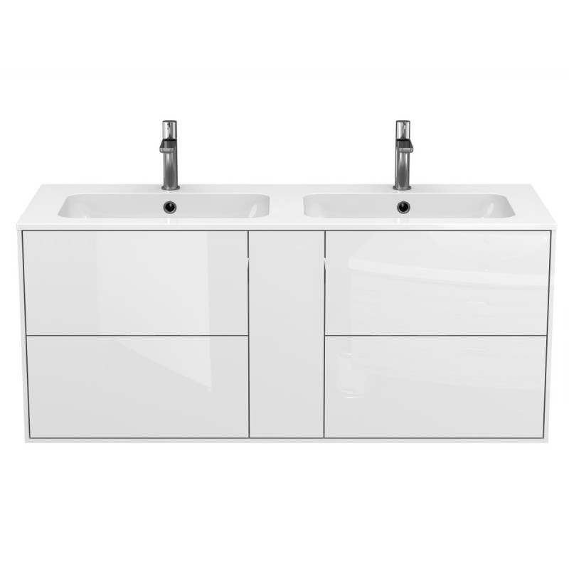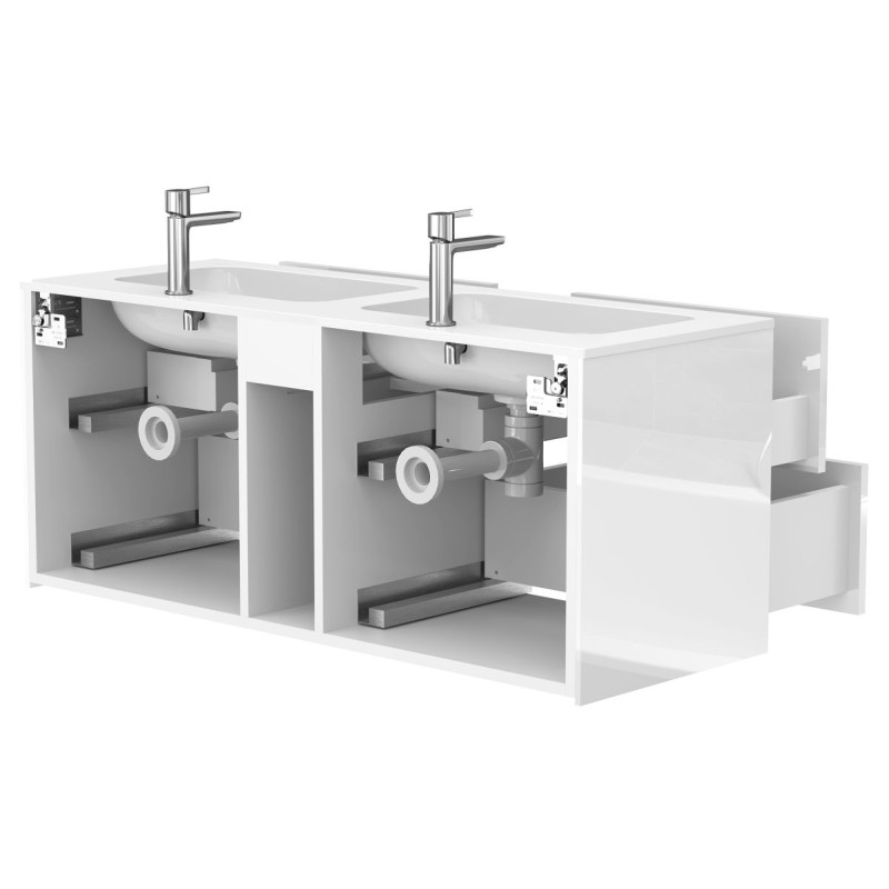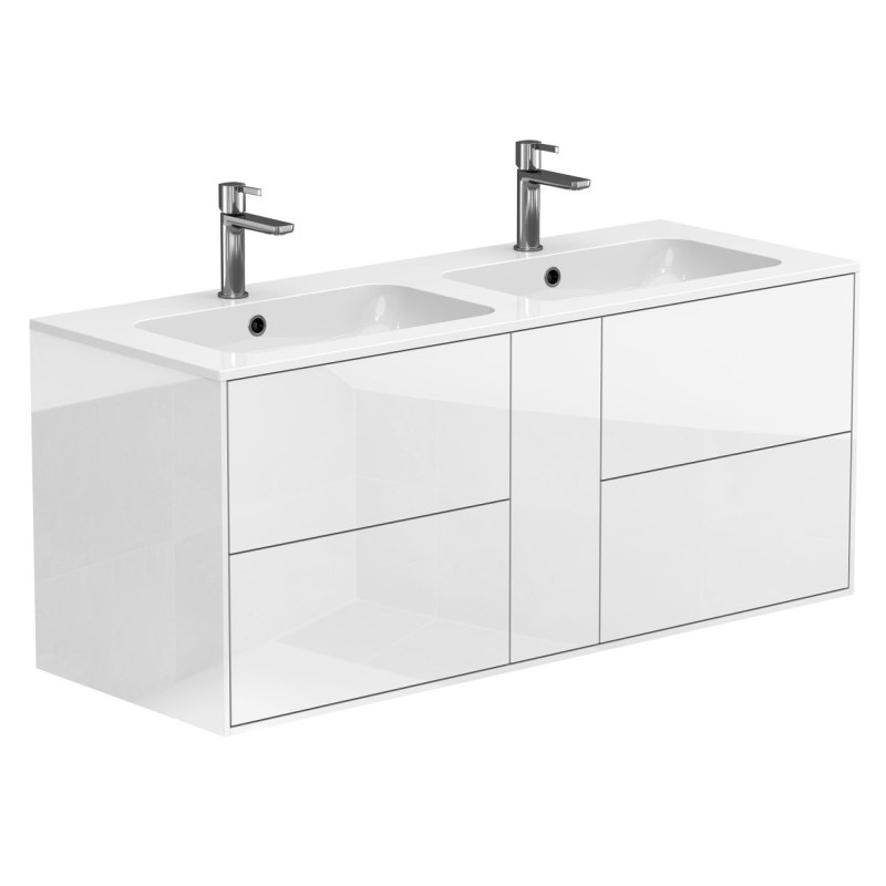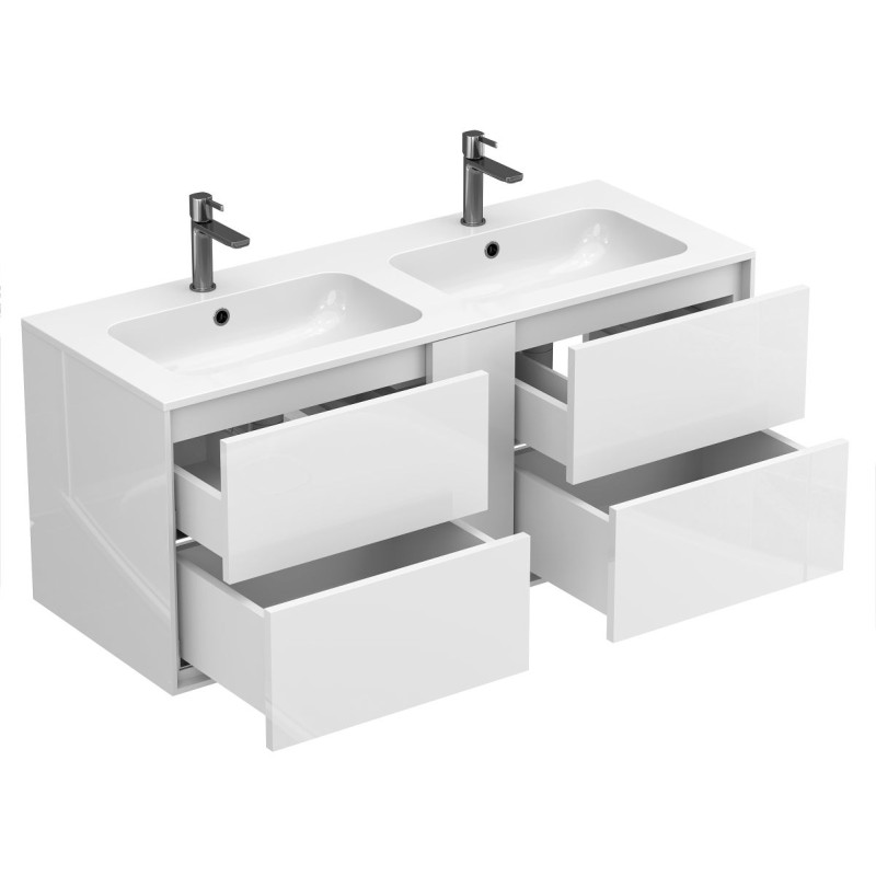 Тумба підвісна SPACE Біла глянцева з умивальником DELLA 1200 D від бренду MIRAGGIO — практичне та стильне рішення для ванної кімнати дому, готелю чи апартаментів.