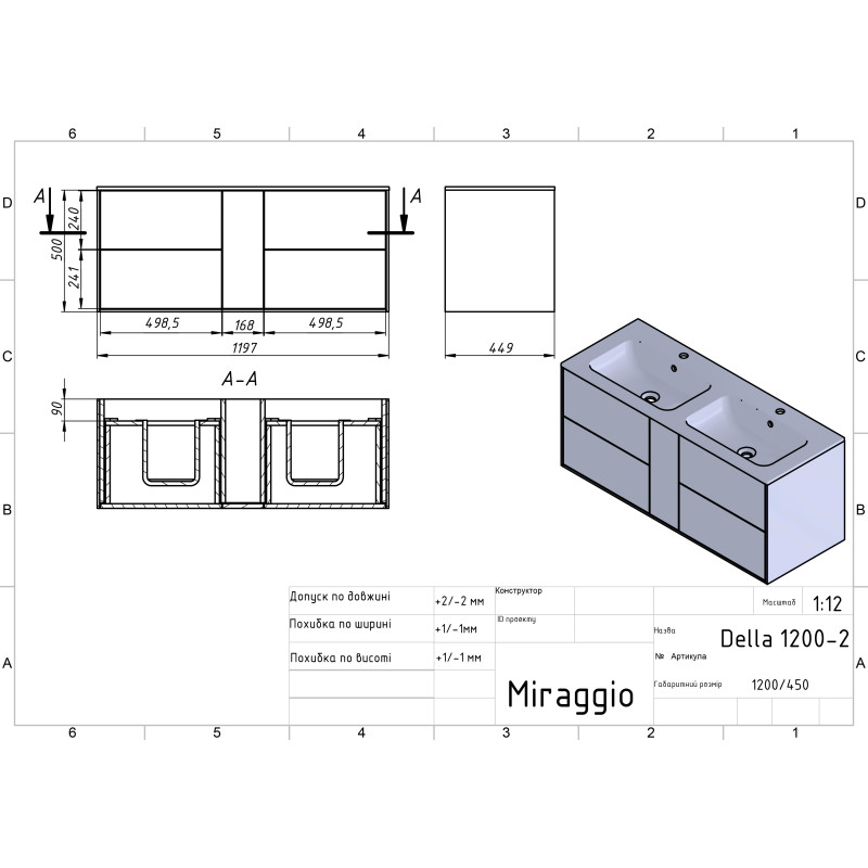 | Комплектація | Умивальник, тумба у зібраному вигляді |