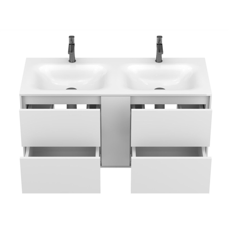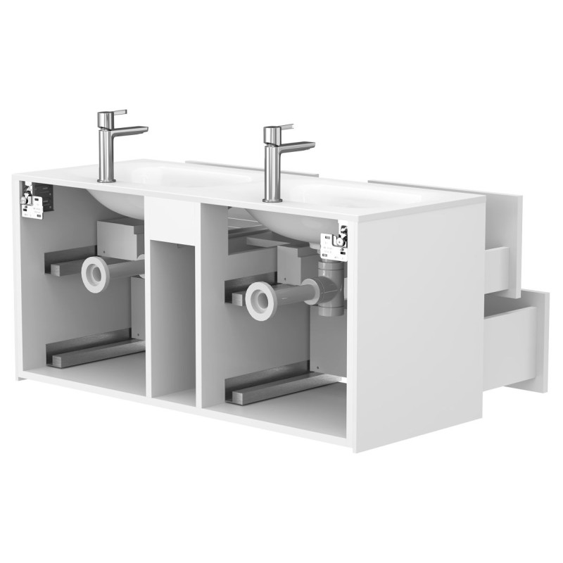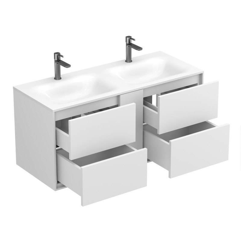 Тумба підвісна SPACE Біла soft-touch з умивальником JESSEL 1100 D від бренду MIRAGGIO — практичне та стильне рішення для ванної кімнати дому, готелю чи апартаментів.