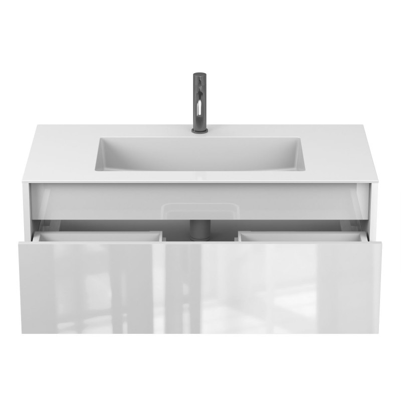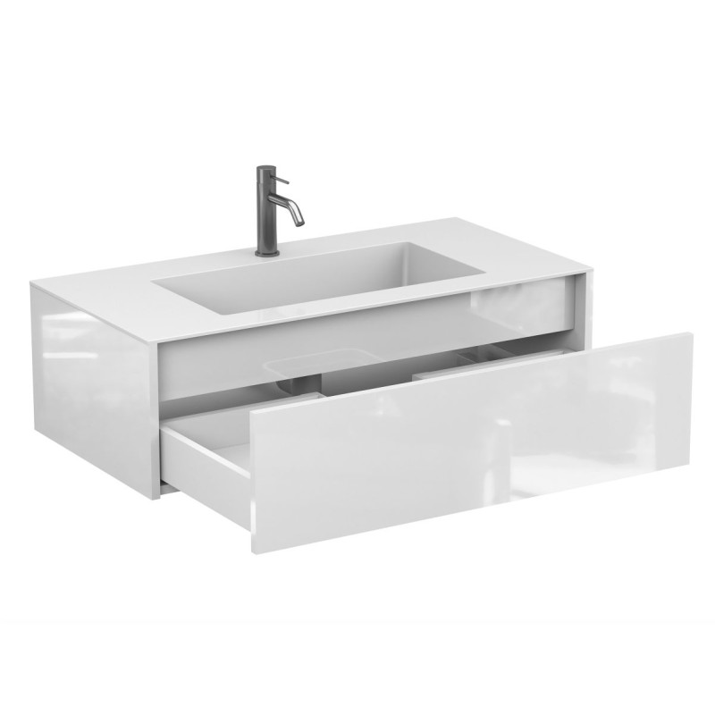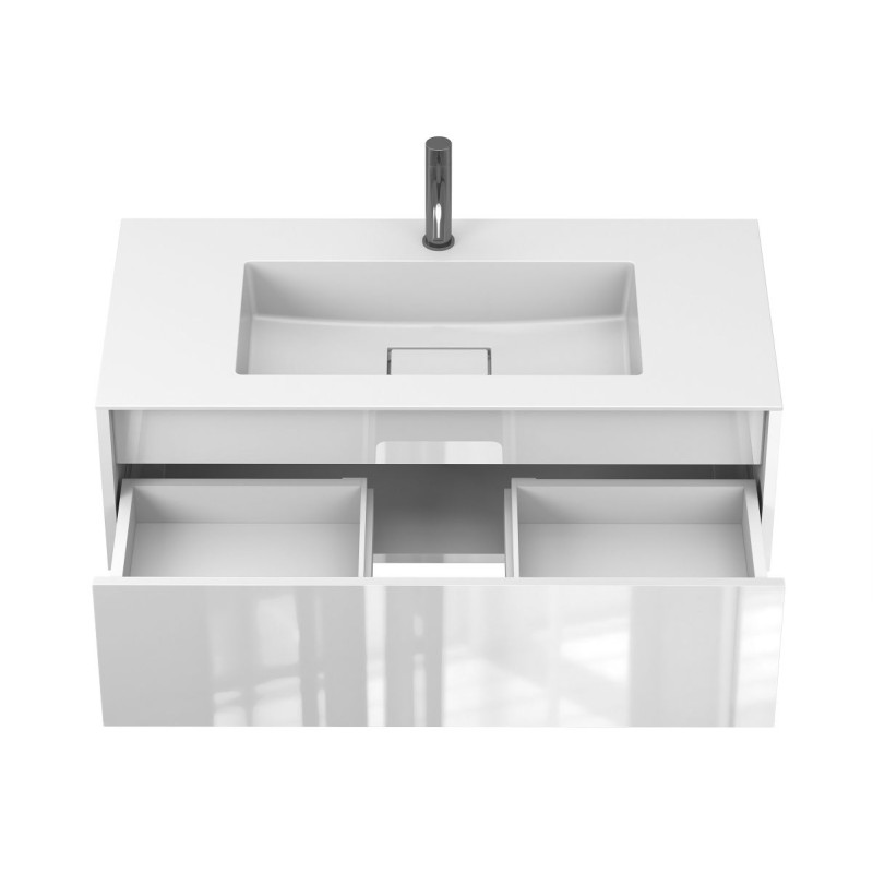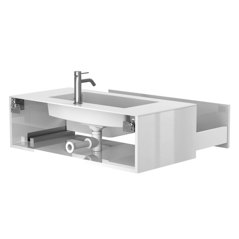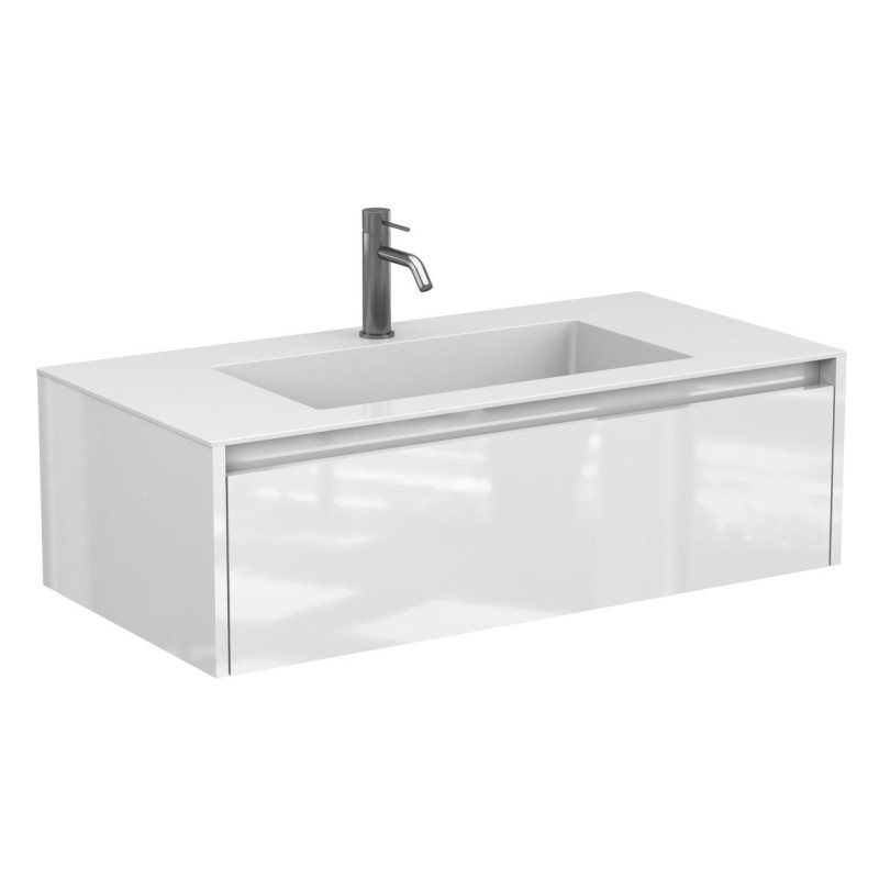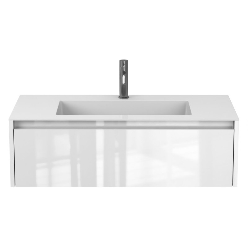 Тумба підвісна UNO біла глянцева з умивальником ERICA 1000 від бренду MIRAGGIO — практичне та стильне рішення для ванної кімнати дому, готелю чи апартаментів.