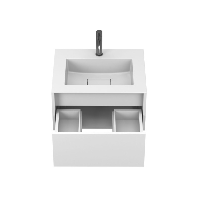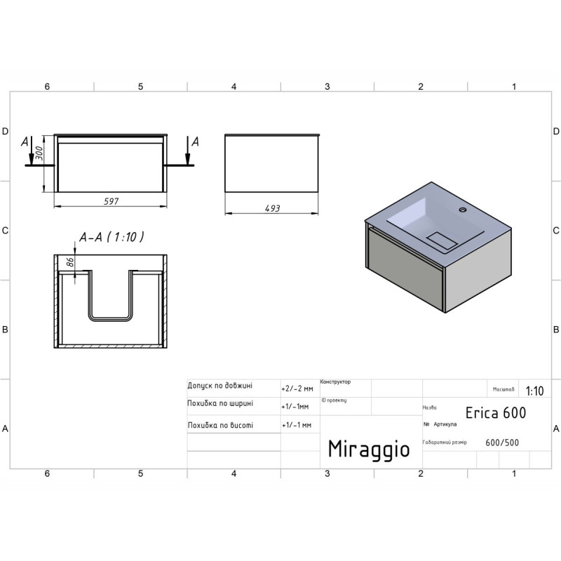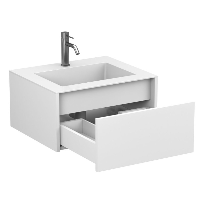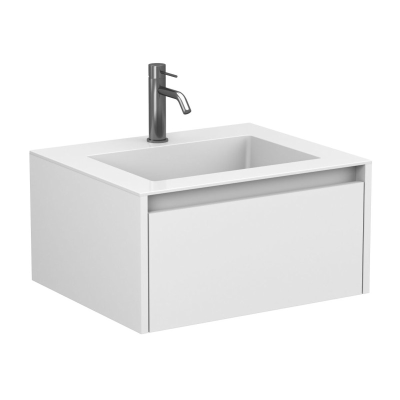 Тумба підвісна UNO біла матова з умивальником ERICA 600 від бренду MIRAGGIO — практичне та стильне рішення для ванної кімнати дому, готелю чи апартаментів.