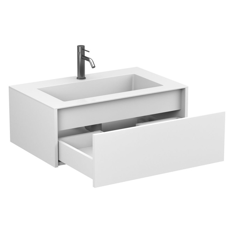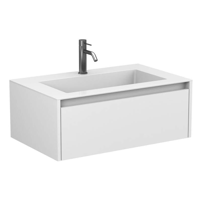 Тумба підвісна UNO біла матова з умивальником ERICA 800 від бренду MIRAGGIO — практичне та стильне рішення для ванної кімнати дому, готелю чи апартаментів.